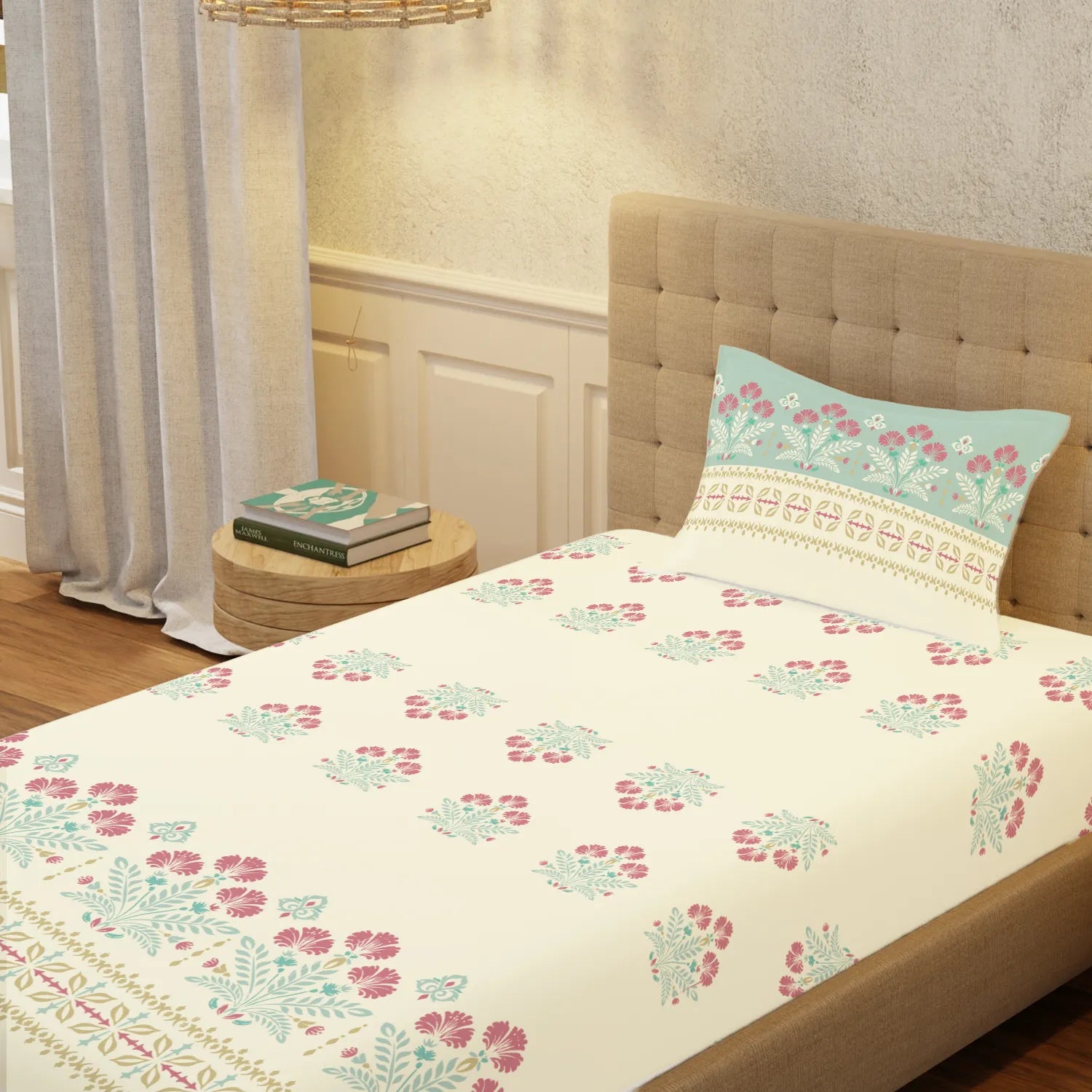 • Serene Design Aesthetic: Features calming pastel shades and gentle floral patterns that create a tranquil and soothing visual appeal. These designs are thoughtfully curated to feel light, peaceful, and timeless—perfect for bedrooms that aim to feel restful rather than busy.