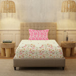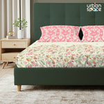 Serene 200 TC 100% Cotton Single Bedsheet with Pillow Covers - Vine Gardens Peach Pink