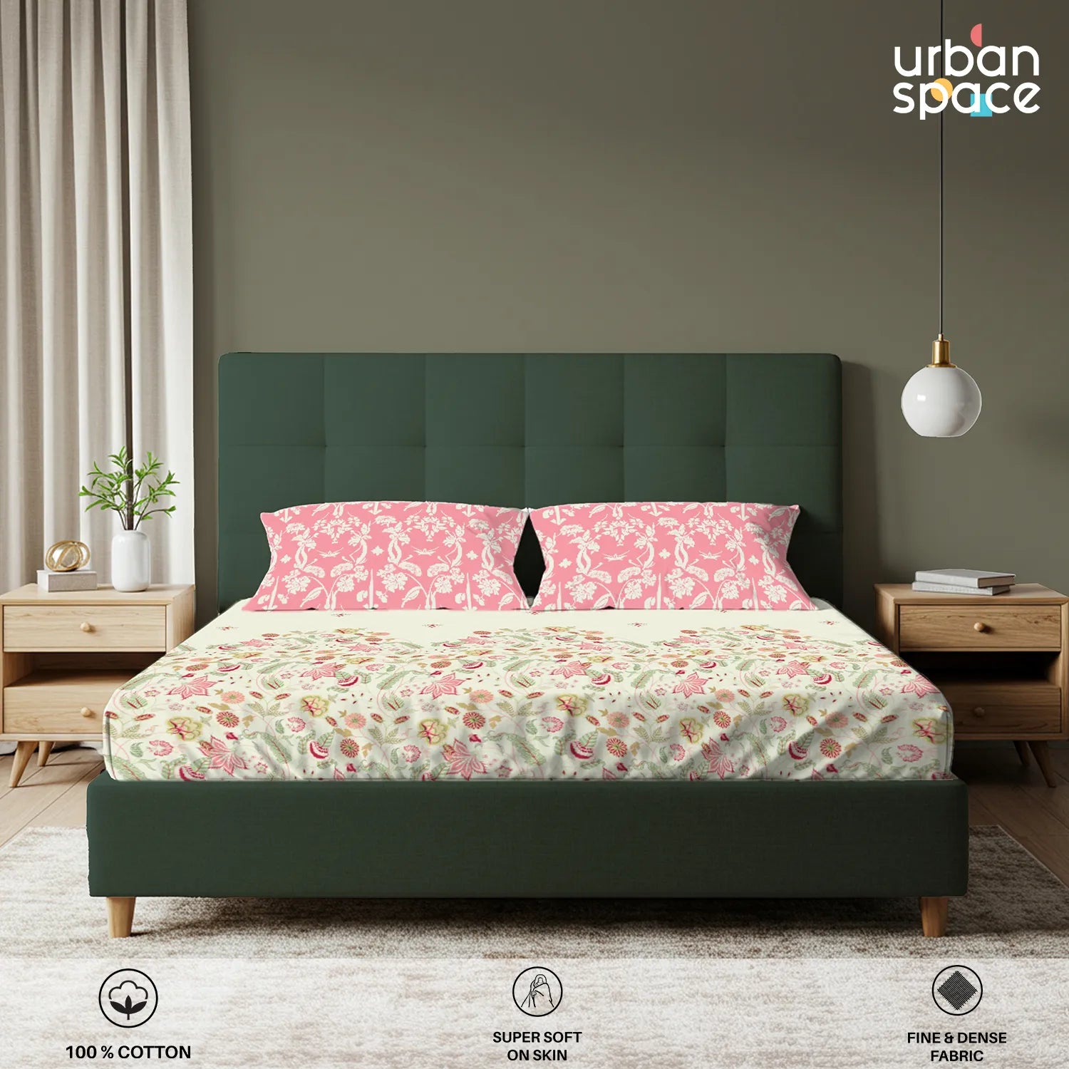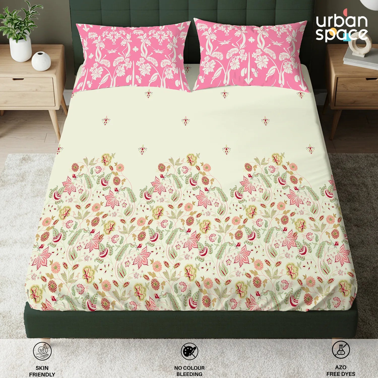 - Fabric & Quality: Made from 100% fine and breathable cotton with a 200 thread count, this bedsheet offers a soft and smooth hand feel for all-season comfort. Crafted using AZO-free colours for safe everyday use and finished with a neat four-sided hem for improved durability and shape retention.