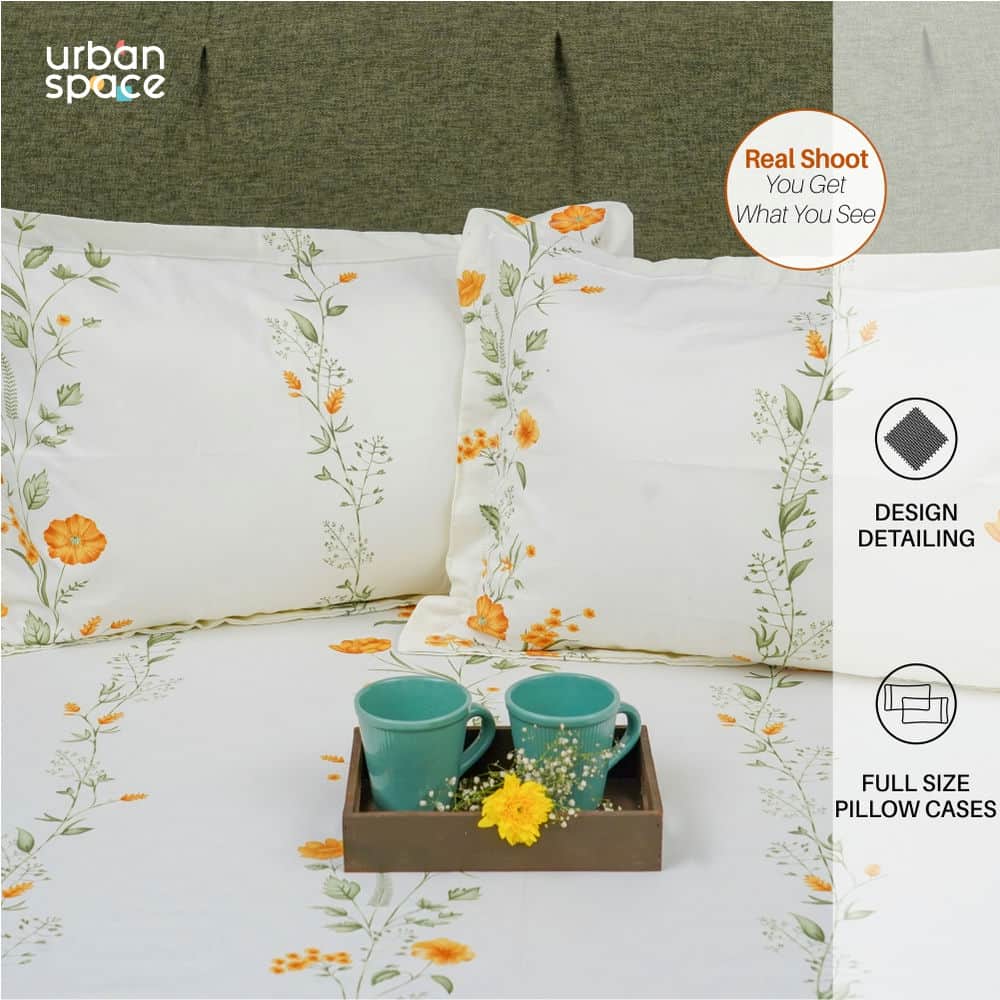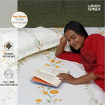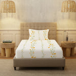 Serene Collection - Breathable 200 TC 100% Pure Cotton Single Bedsheet with Pillow Cover, Veil Bloom- Yellow