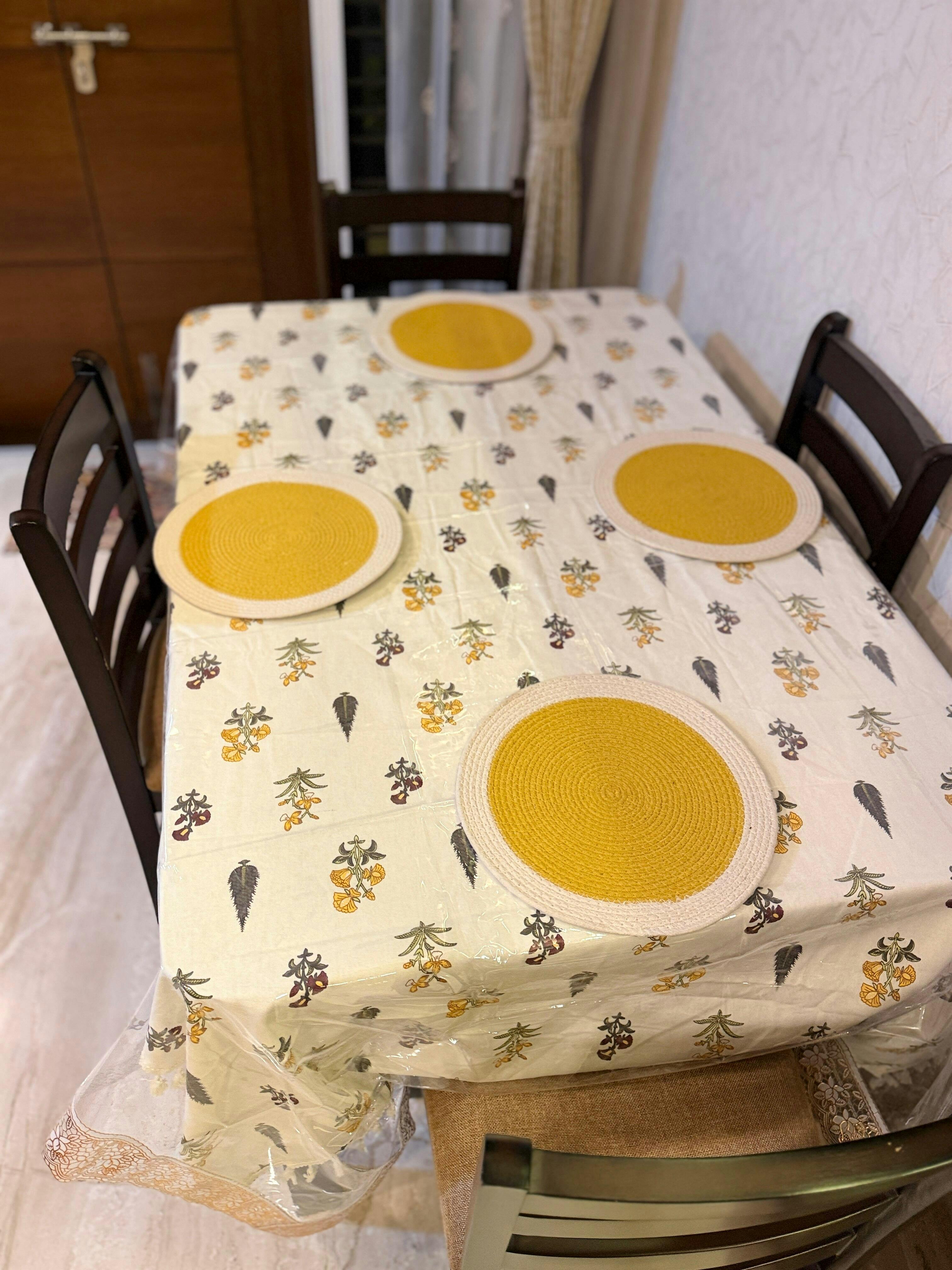 • Table Cloth Size : Available in 3 sizes . 4 Seater- 48"x72" (4 ft * 6 ft) . 6 Seater - 48"x92'( 4 ft * 7.5 ft). Table Cover Square- 48" * 48" (4 ft * 4 ft).