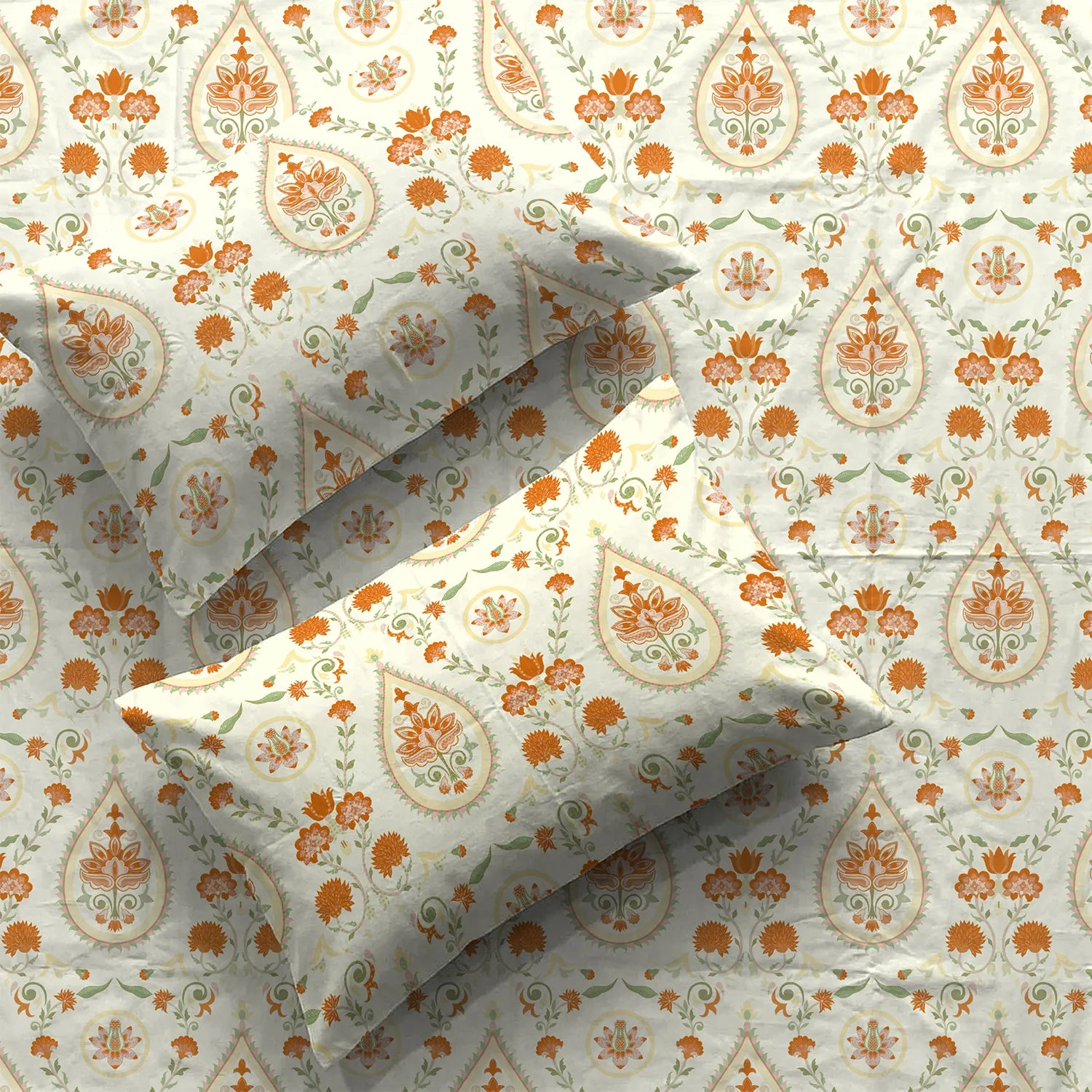 Serene 200 TC 100% Cotton Bedsheet with Pillow Covers - Persian Courtyard Buttercream