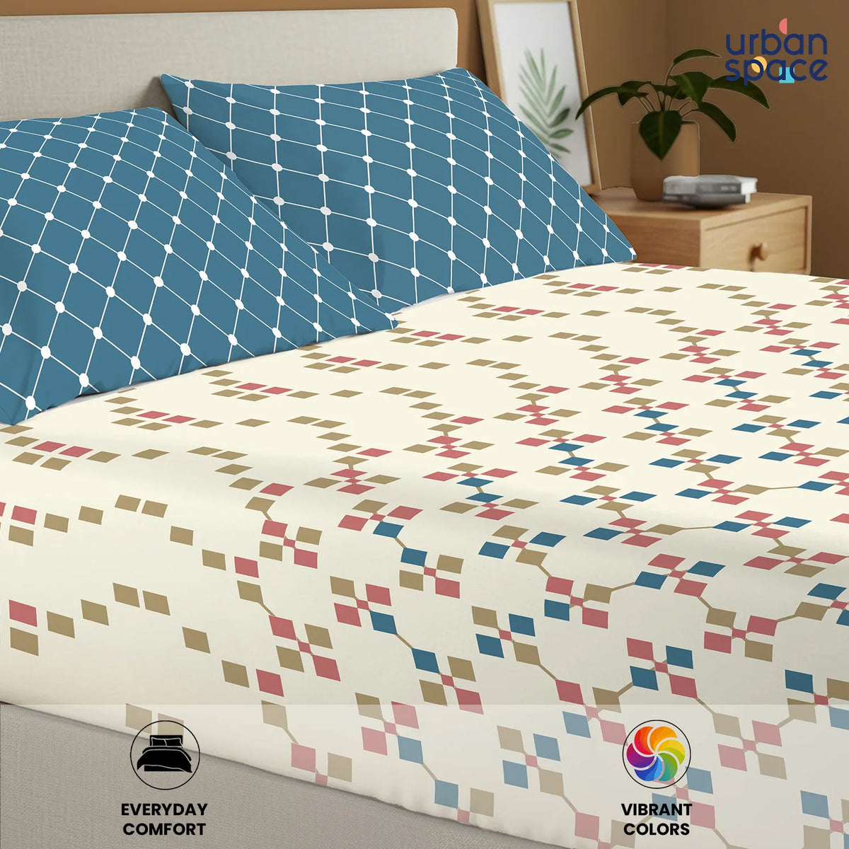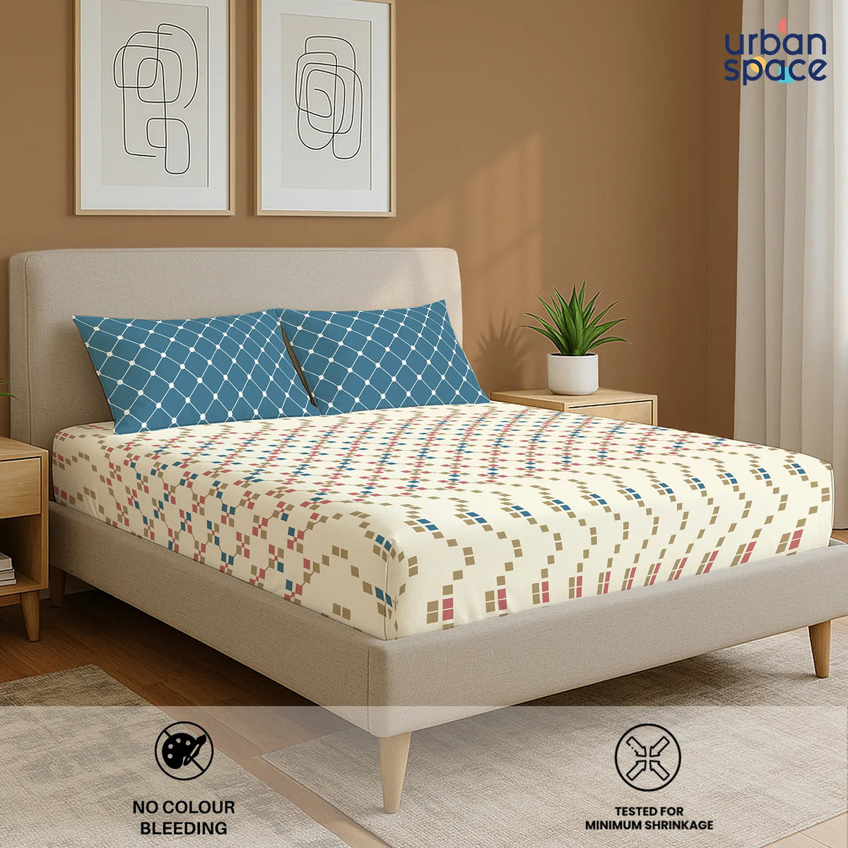 Divine Collection - Cotton Bedsheet With 2 Pillow Covers, Zen Blocks Blue