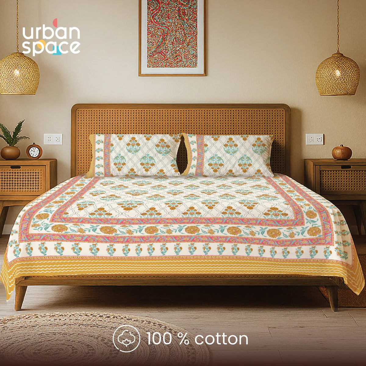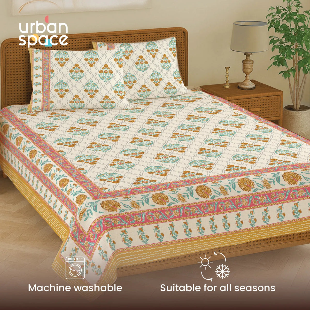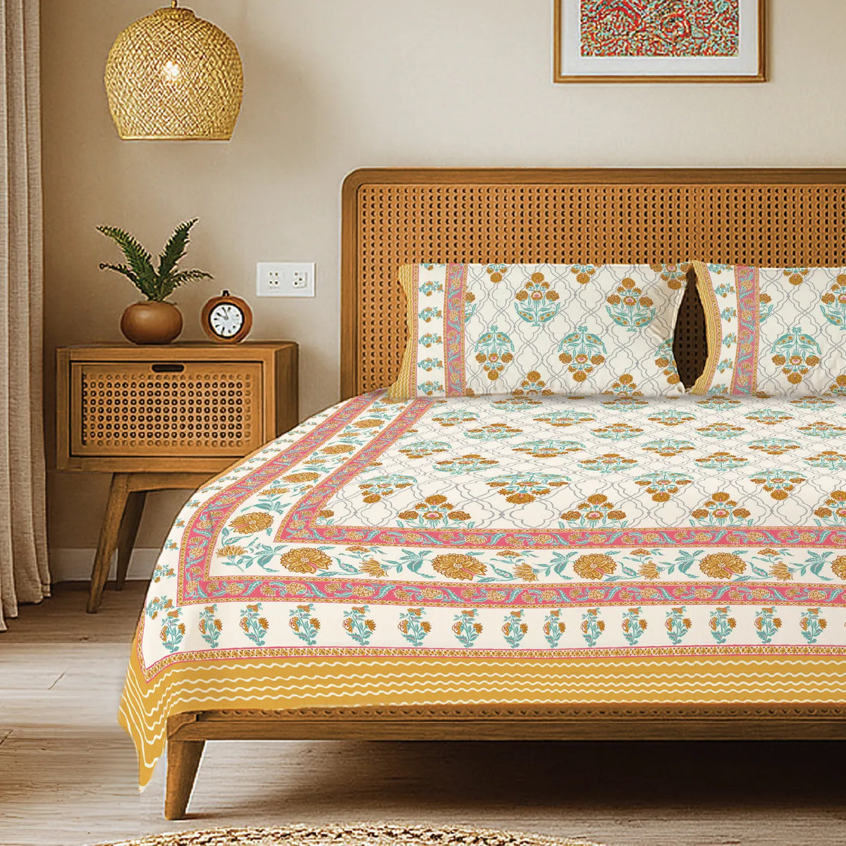 • Authentic Handblock Prints: Printed by skilled artisans using traditional Rajasthani handblock techniques, each bedsheet features slight natural variations that highlight handcrafted authenticity and cultural richness.