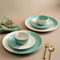 Handmade Ceramic Full dinner set for 2, 2 pieces each of dinner plate, quarter plate and katori bowls, Set of 6, Green Pearl