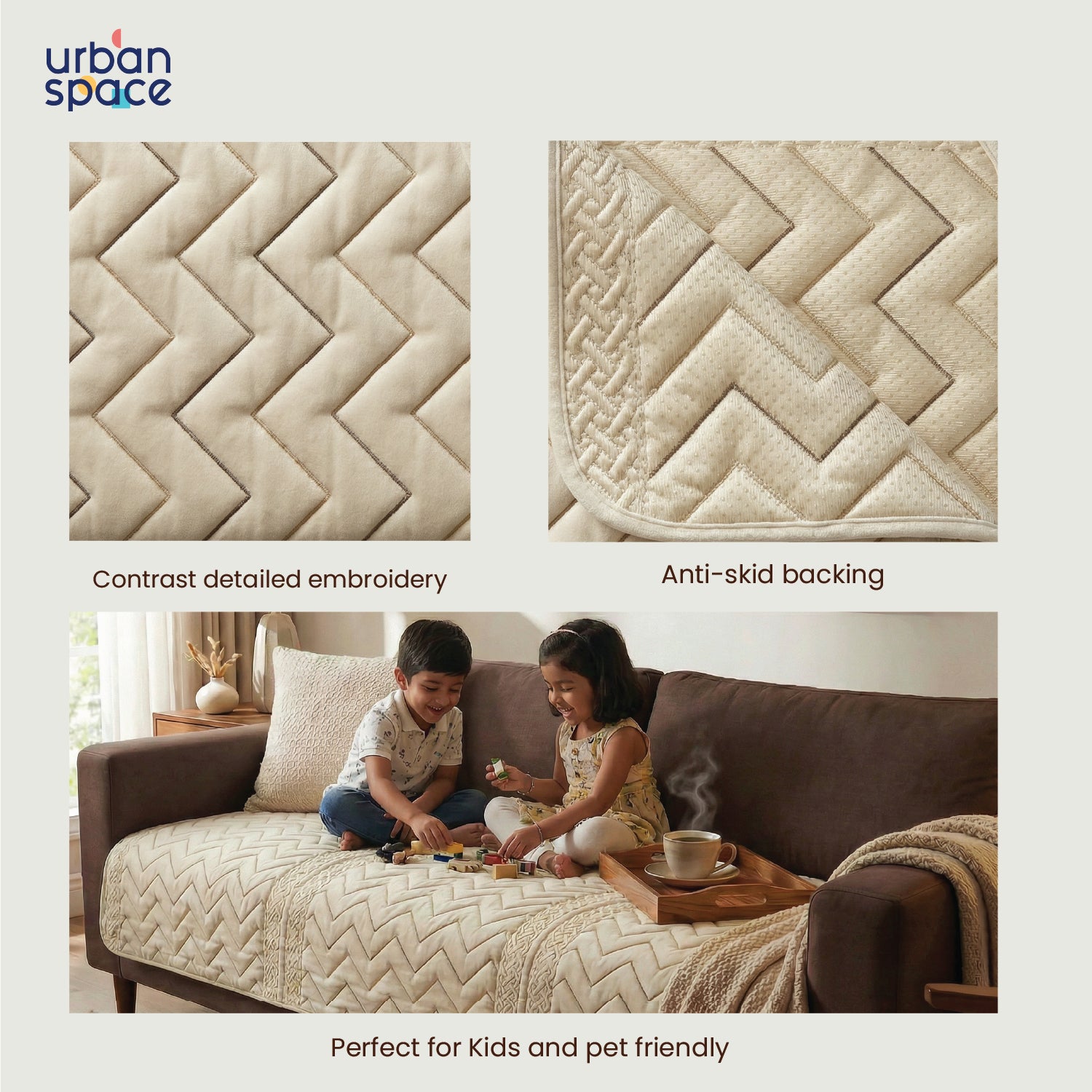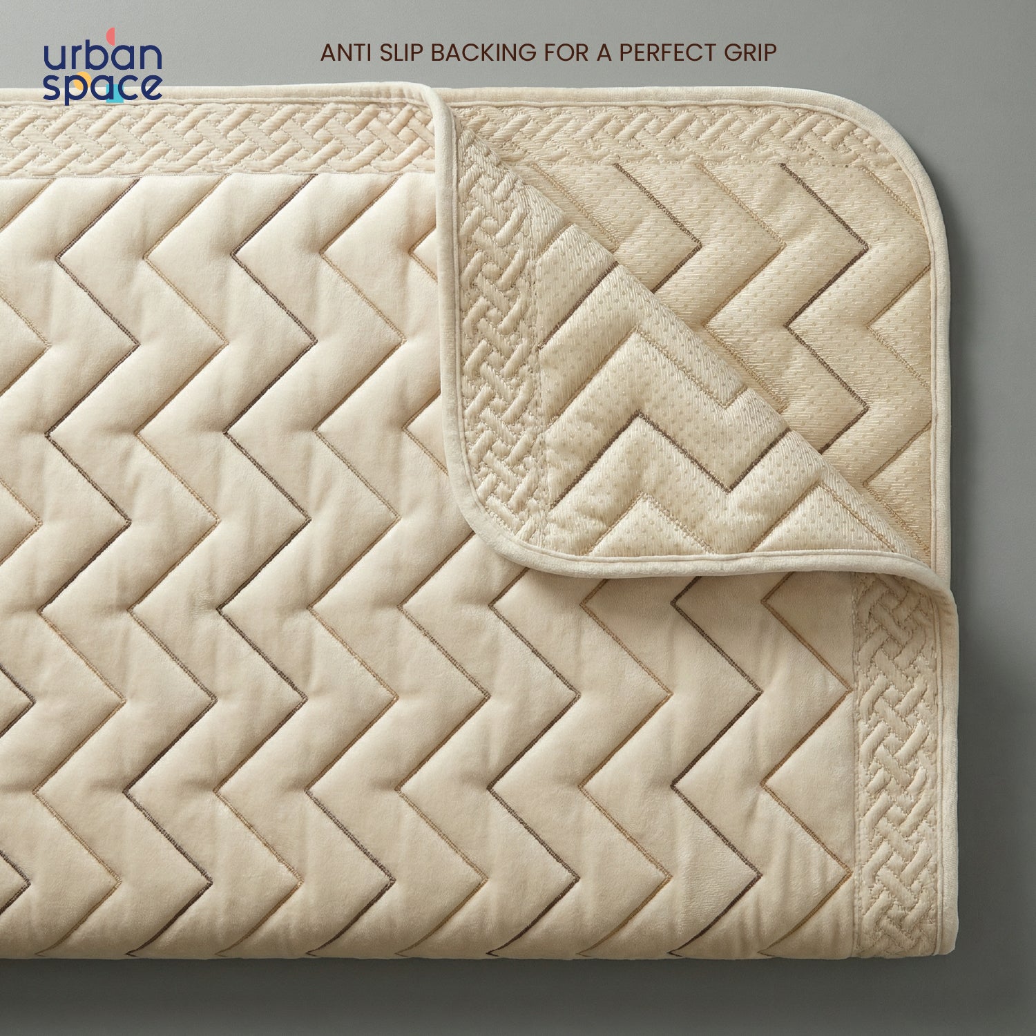 Anti Skid Quilted Velvet Sofa Mats, Zig Zag - Beige