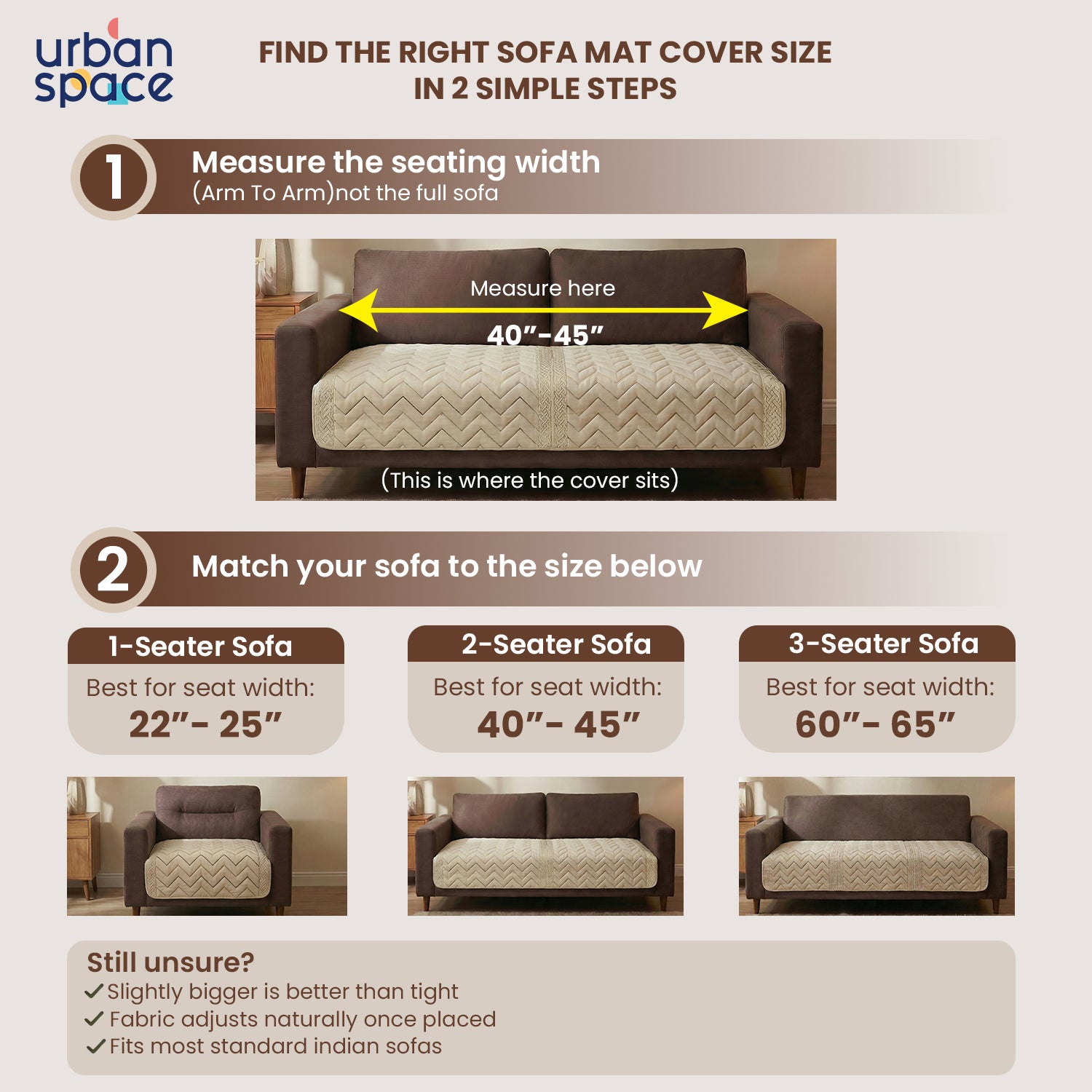Available in Multiple Sizes: Fits standard 1-seater, 2-seater and 3-seater sofas, ensuring a snug and perfect fit for your furniture.