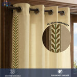Premium 100% Cotton Curtain for Window & Curtains for Door with Lace Trim - Pack of 1, Beige - Leaves lace Brown