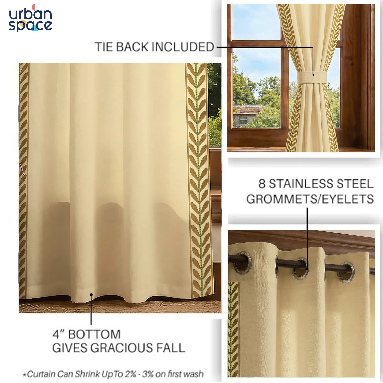 - Only with Urban Space: We provide up to 2" extra length in all standard and custom sizes to account for post-wash shrinkage. Combined with a 4" bottom fold, this gives you flexibility to increase the length in the future, ensuring longer usability.