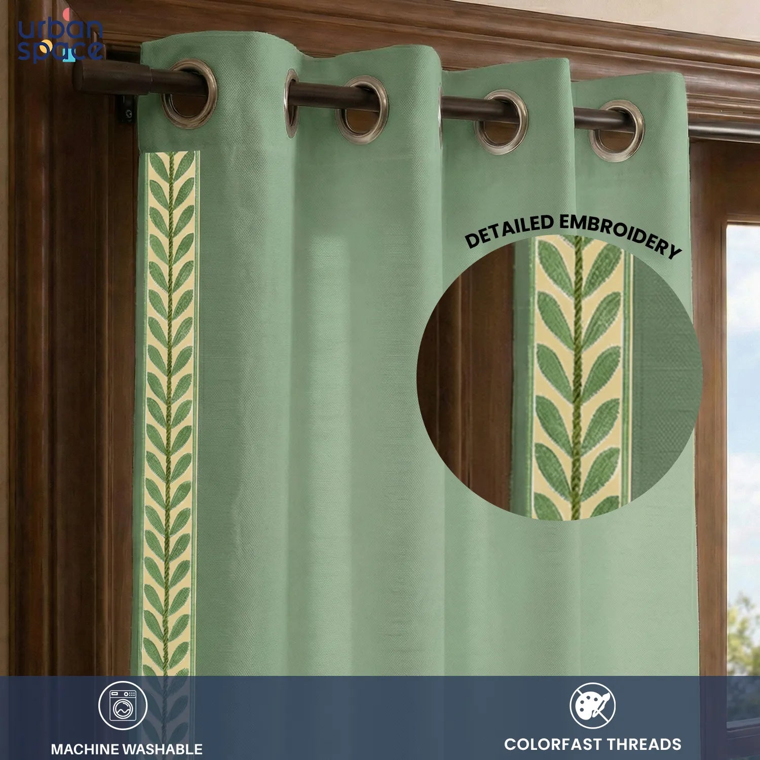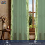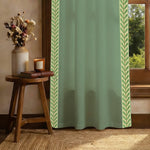 Premium 100% Cotton Curtain for Window & Curtains for Door with Lace Trim - Pack of 1, Sage Green - Leaves Lace Green