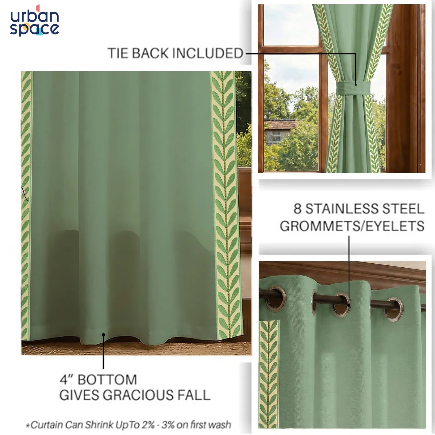 - Only with Urban Space: We provide up to 2" extra length in all standard and custom sizes to account for post-wash shrinkage. Combined with a 4" bottom fold, this gives you flexibility to increase the length in the future, ensuring longer usability.