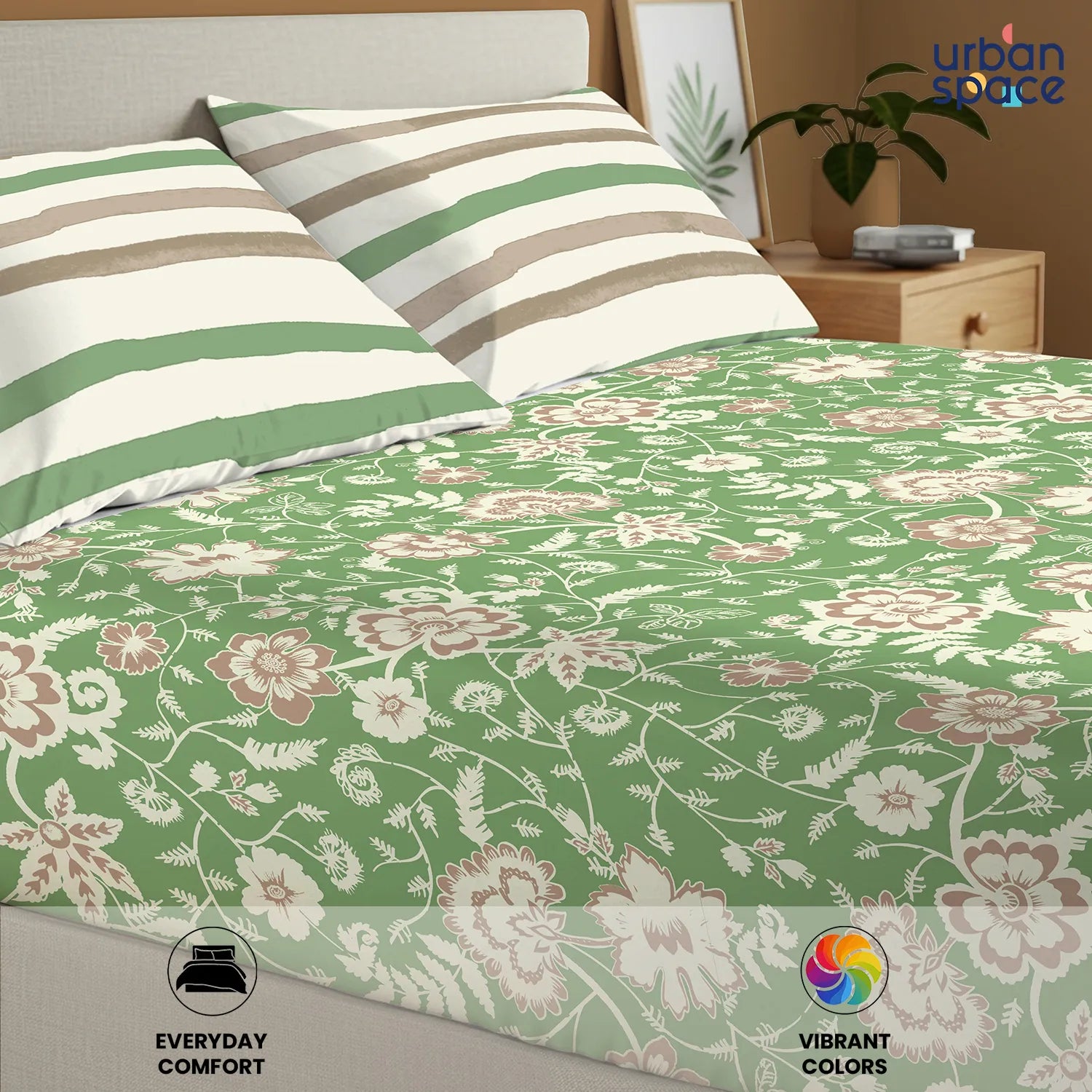 Divine Collection - Cotton Bedsheet With 2 Pillow Covers, Viola Sage Green