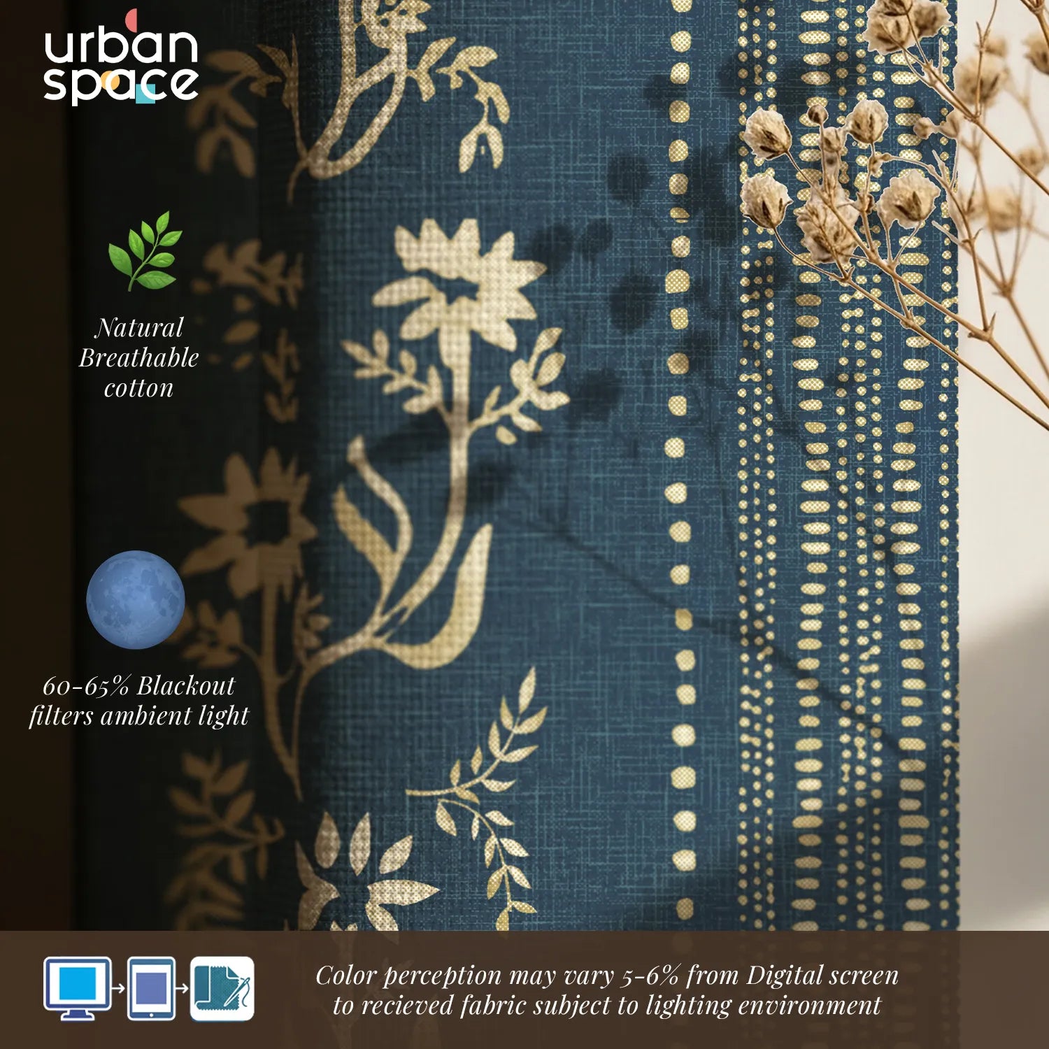 100% Cotton Curtains for Living Room, Bedroom curtains - Pack of 2 curtains, Garden trail Indigo