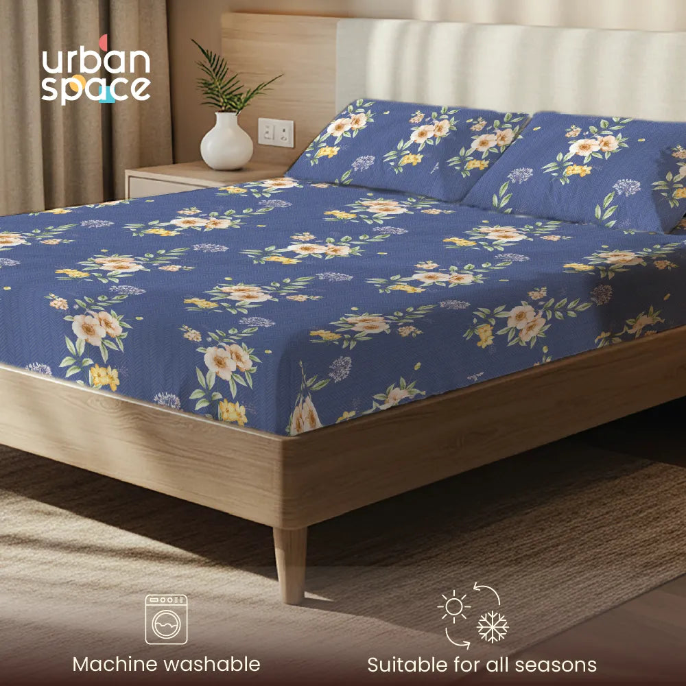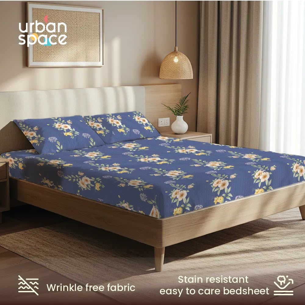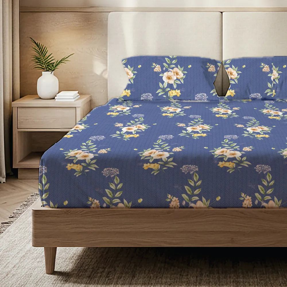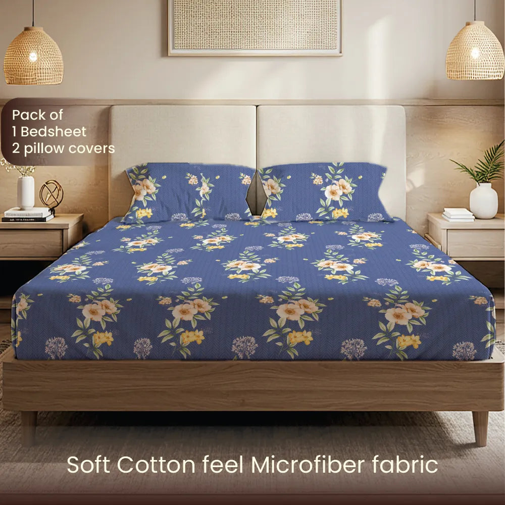 200 TC Glaced Cotton Microfiber Bedsheet with Pillow Covers - Twilight Bloom
