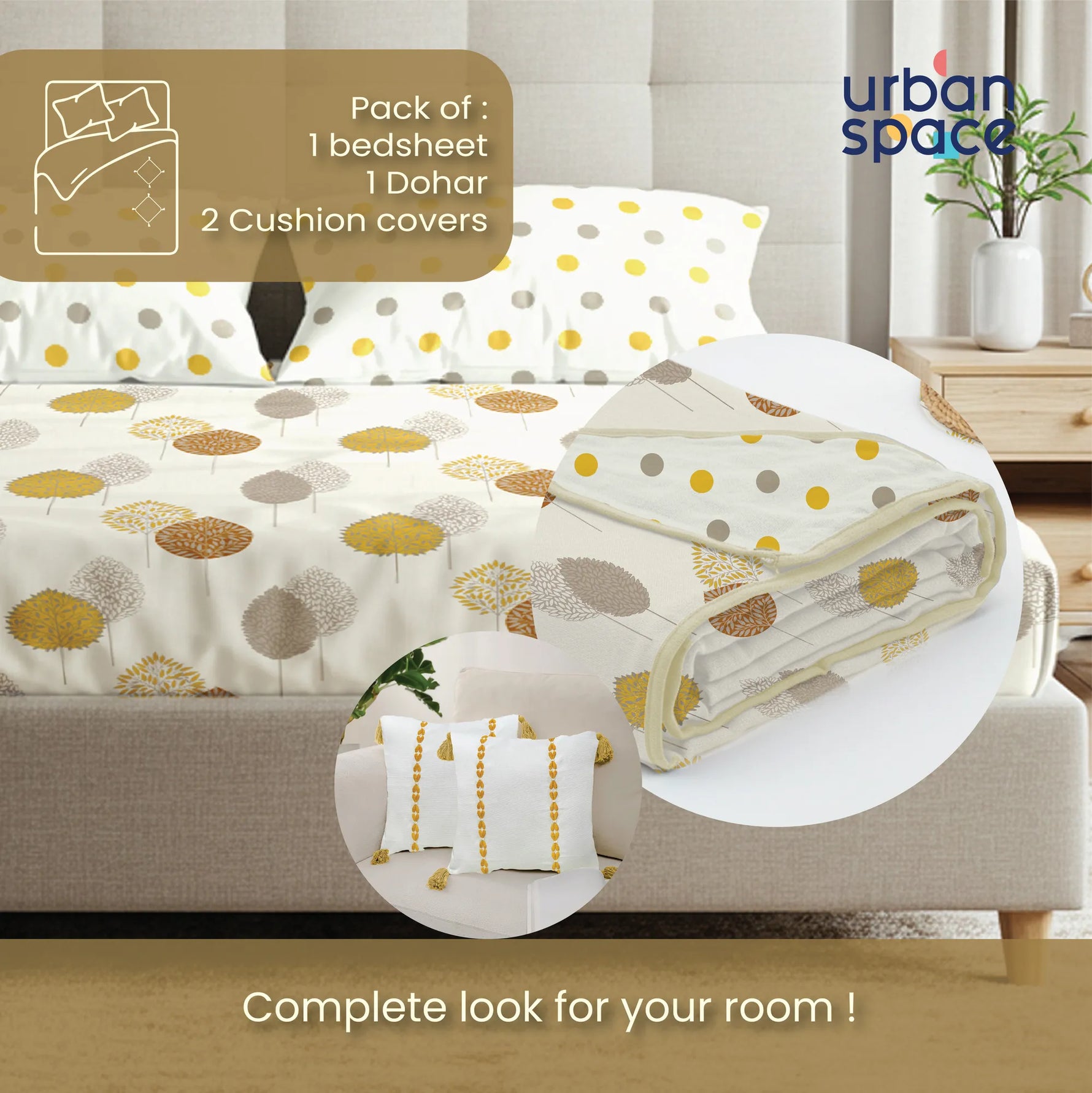 Bedding Sets by Urban Space gives you a unique choice of coordinating your room decor in the designs of your liking, with bedsheet and dohar or blanket complimenting each other. Both the products are of 100% cotton with dohar being reversible giving a nice contrast touch to the room decor.