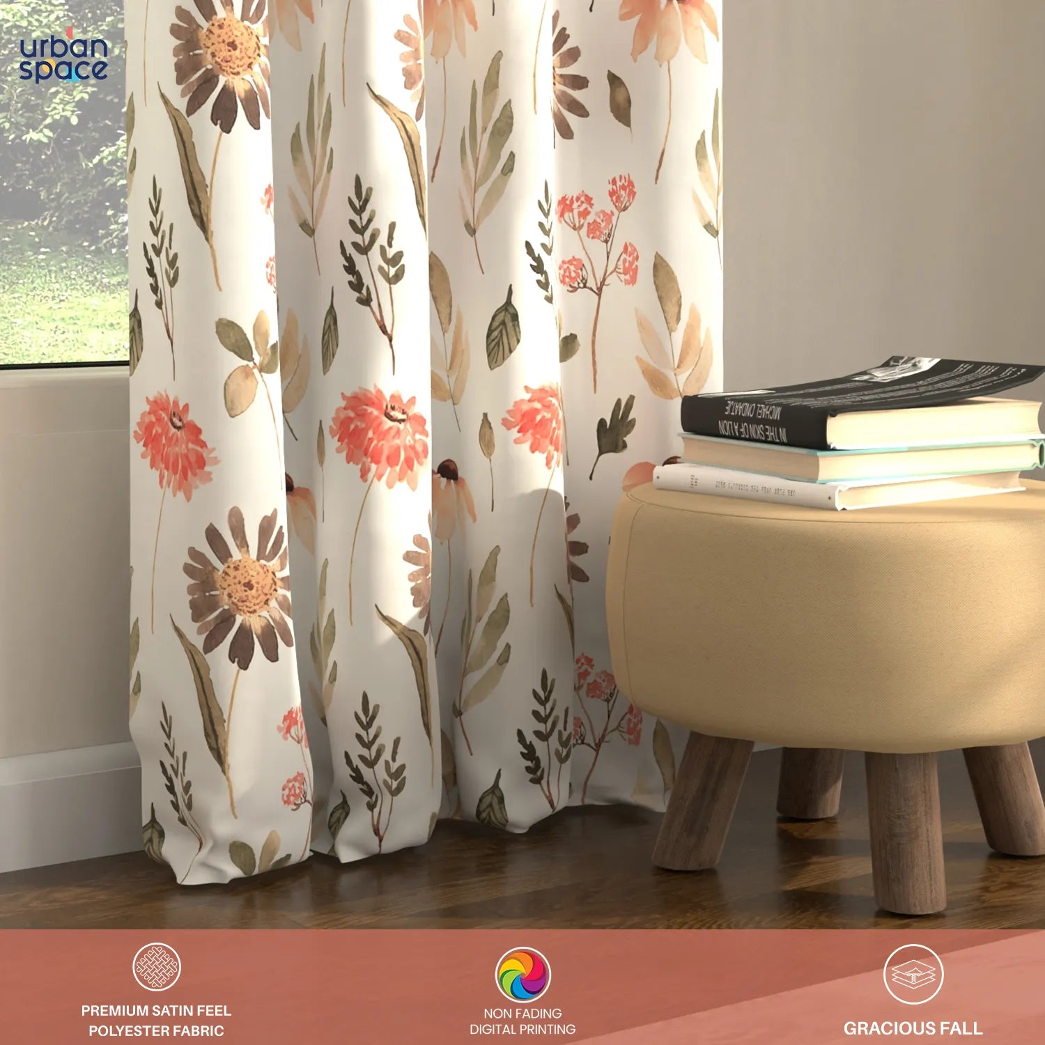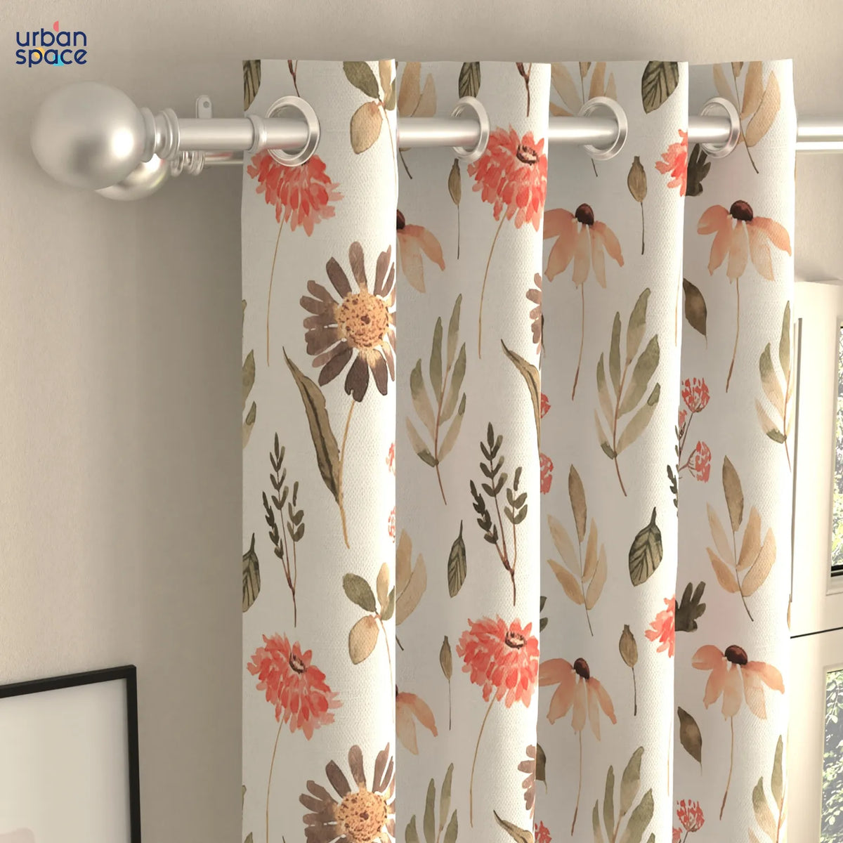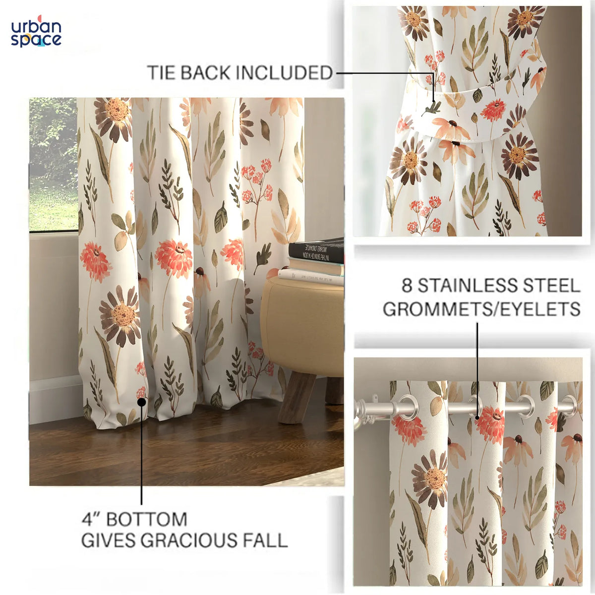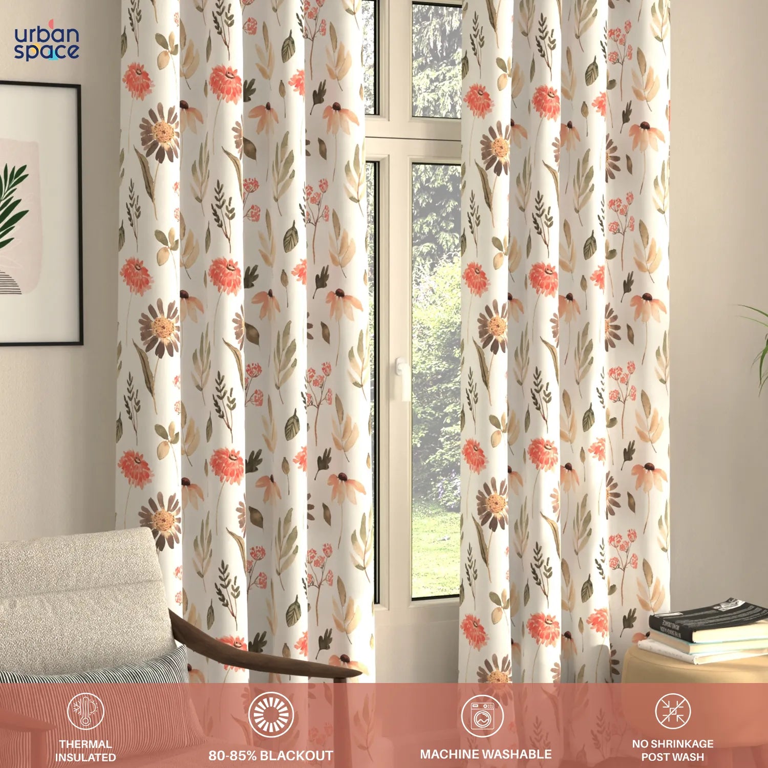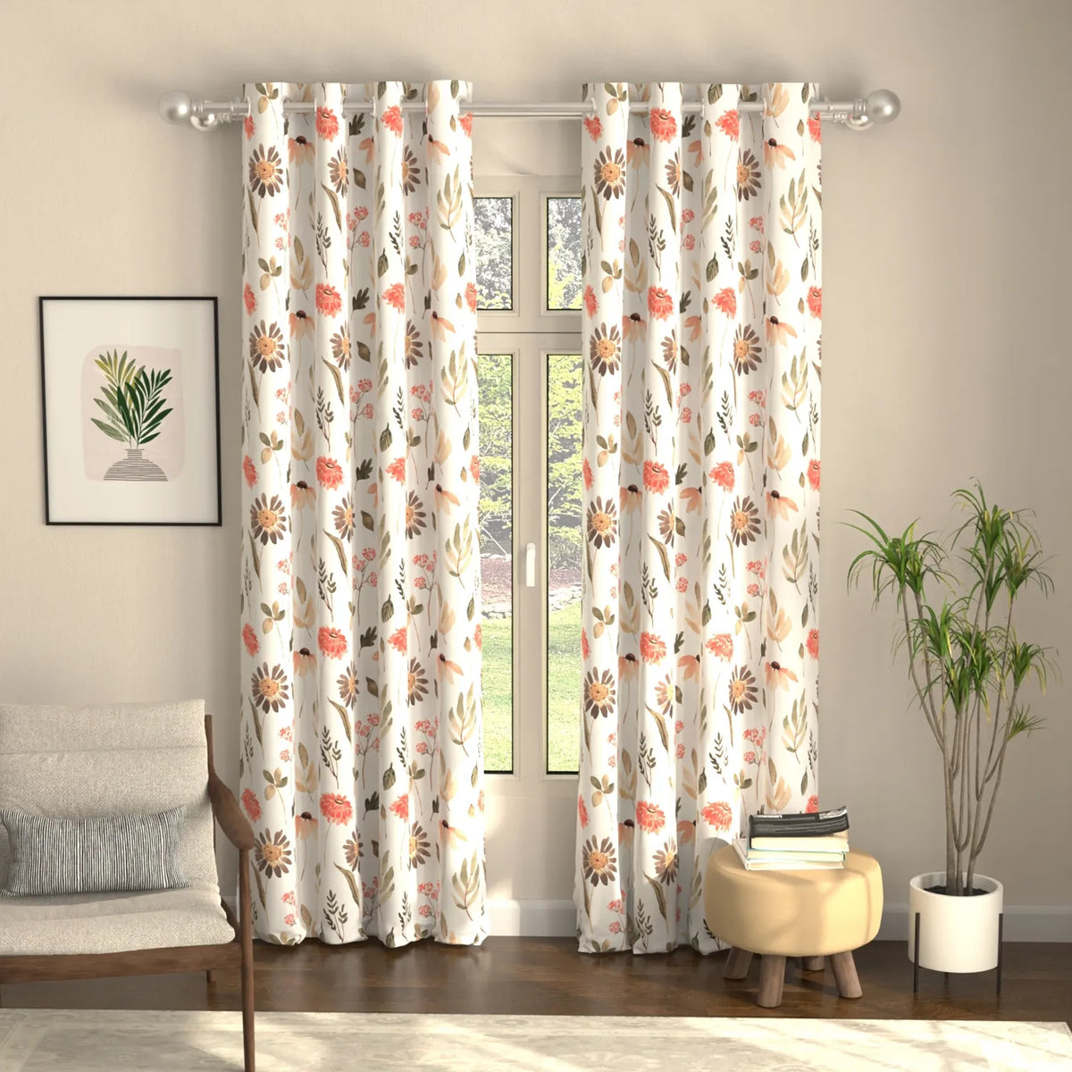 Blackout Curtains, Digital Printed Curtains, Pack of 2 Curtains - Frost Flora Peach