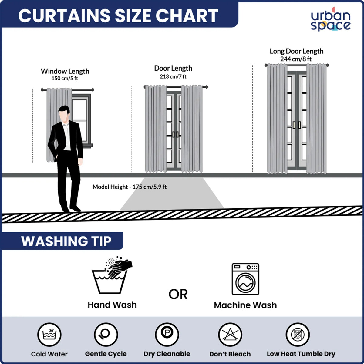 • Pack Contains: Each pack includes 2 curtain panels, with each panel measuring 45–46" inches (3.75 feet) in width. The set comfortably covers a 4–5 ft wide window/door with elegant pleats. Standard length options are 5 ft, 7 ft, and 8 ft. Lengths and hanging patterns can also be customized as per your requirements (explore or connect with customer care).