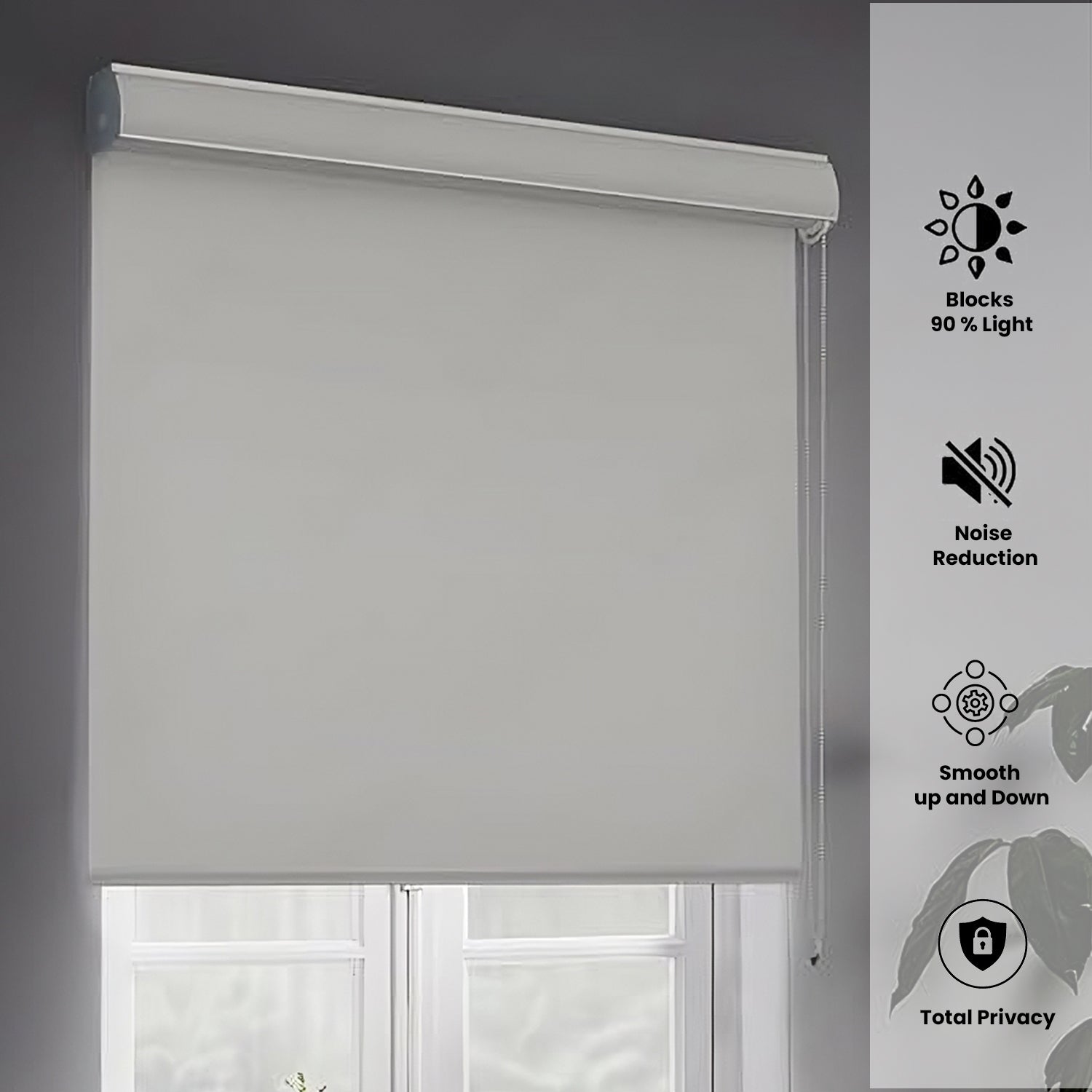 Blackout Roller Blinds - Waterproof, 90% Room Darkening, Corded Roll-Up Curtains for Home & Office - Off-White