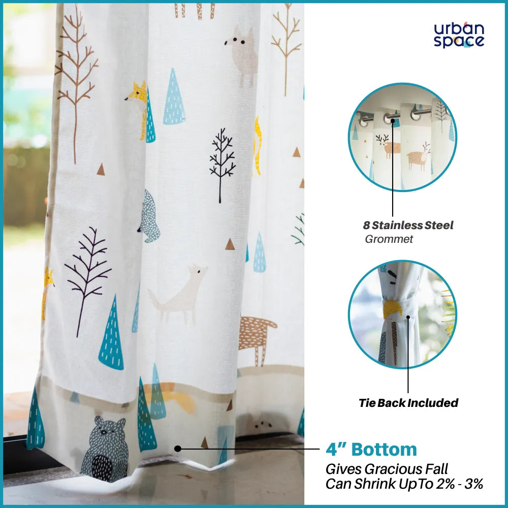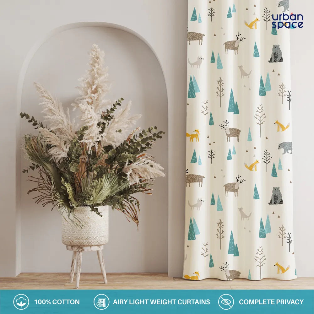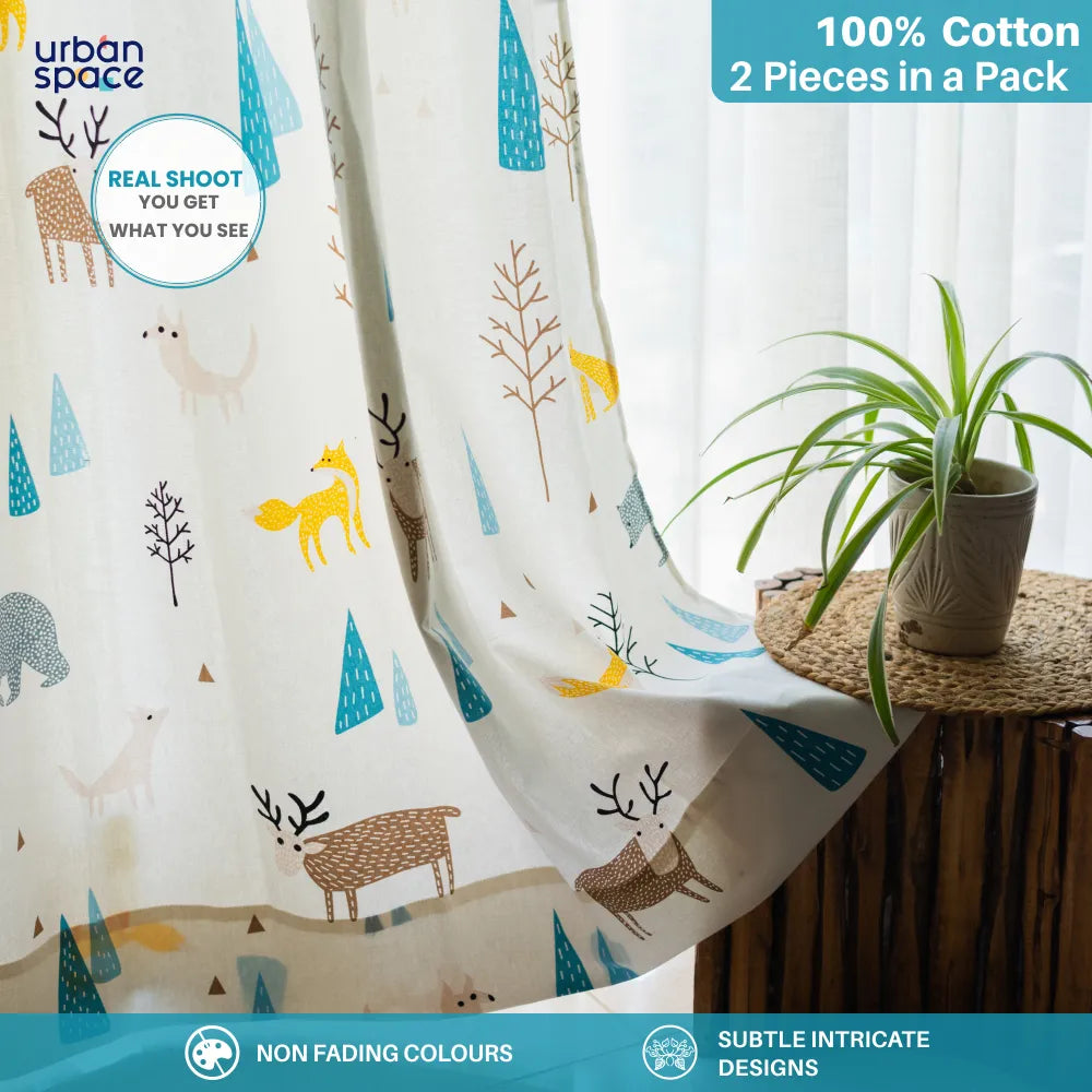 Children Room Curtains, 100% Cotton Room Darkening, Pack of 2 Curtains - Reindeer