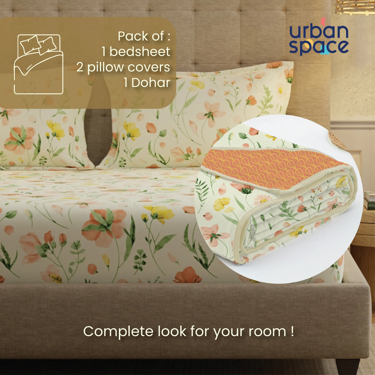 Bedding Sets by Urban Space gives you a unique choice of coordinating your room decor in the designs of your liking, with bedsheet and dohar or blanket complimenting each other. Both the products are of 100% cotton with dohar being reversible giving a nice contrast touch to the room decor.
