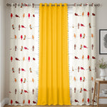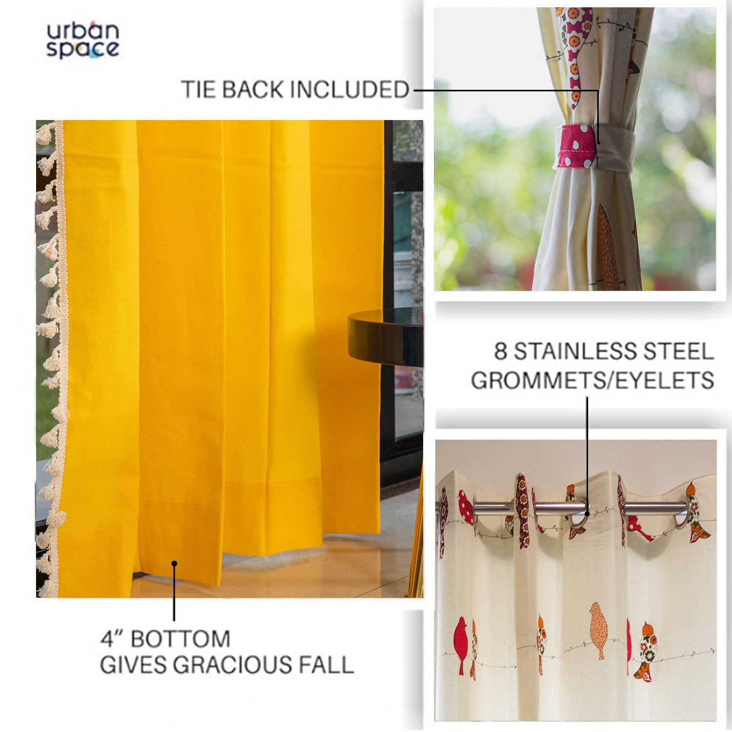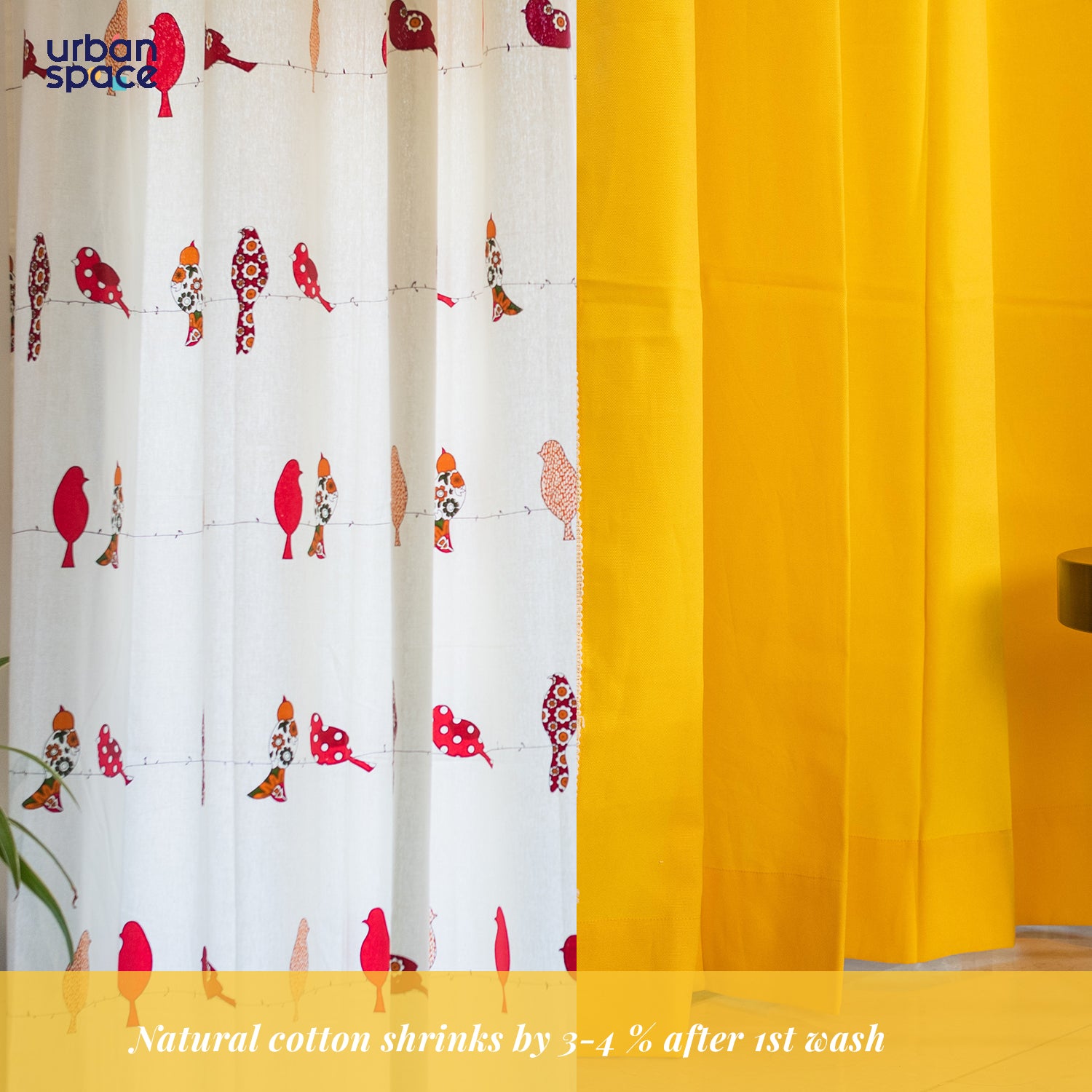 Cotton Curtains Combo, Set of 3 curtains, 60-65% Room Darkening Curtain - Humming Bird Red & Aura Yellow