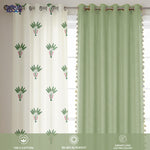 Cotton Curtains Combo, Set of 3 curtains, 60-65% Room Darkening Curtain - Palm Lagoon Green & Aura Green
