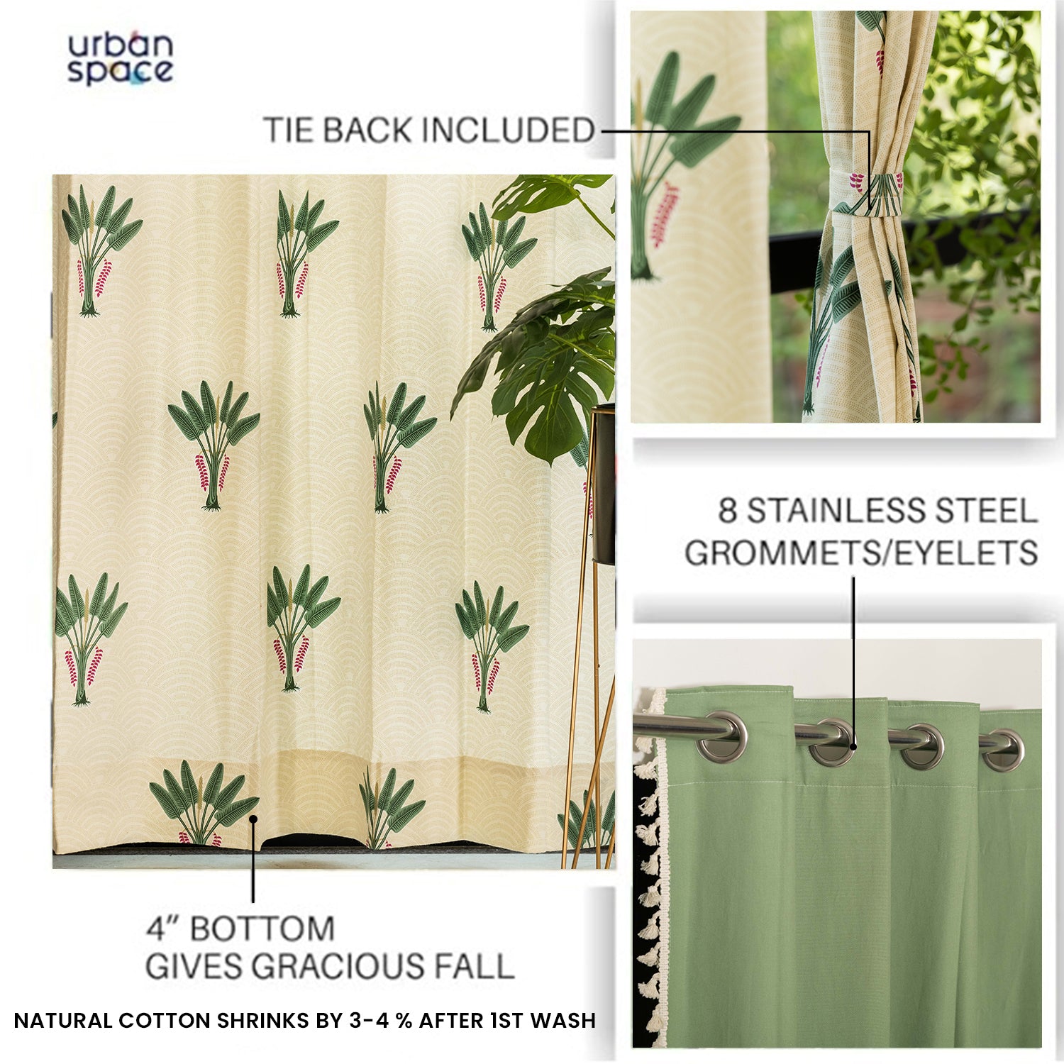| Features | 4" Bottom, Includes Tieback, Rust-Proof Stainless Steel Eyelets (Non-Detachable) |