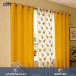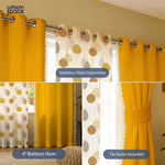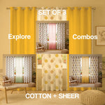 Cotton - Sheer Curtains Combo, Set of 3 curtains, 60-65% Room Darkening Curtain - Drops Mustard Sheer & Aura Yellow