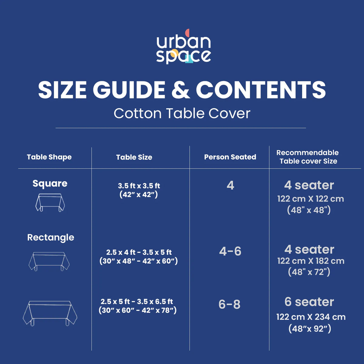 Made from 100% natural cotton with a durable 250 GSM canvas-like weave, this table cover is designed for daily use. The thick yet soft fabric protects your table from spills, heat, and scratches while staying neatly in place. It offers the perfect balance of strength, comfort, and practicality for everyday meals.