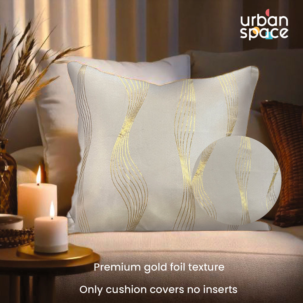 Decorative Gold Foil Cushion Cover, for Sofa, Bedroom, Living Room - Set of 2 - Double wave Beige