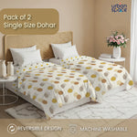 2 Single Bed Malmal Cotton Dohars in a Gift Box, Drops Mustard