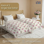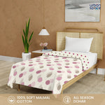 2 Single Bed Malmal Cotton Dohars in a Gift Box, Drops Pink