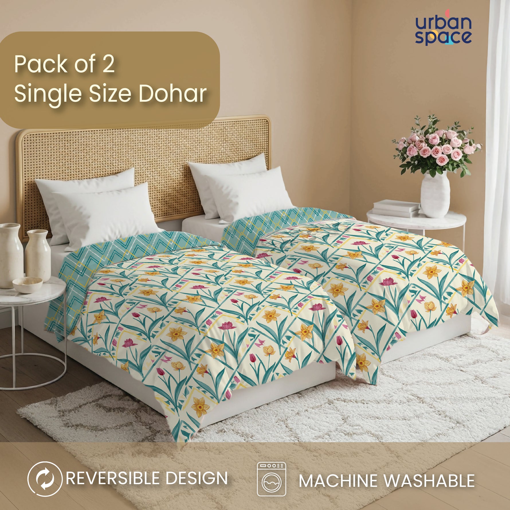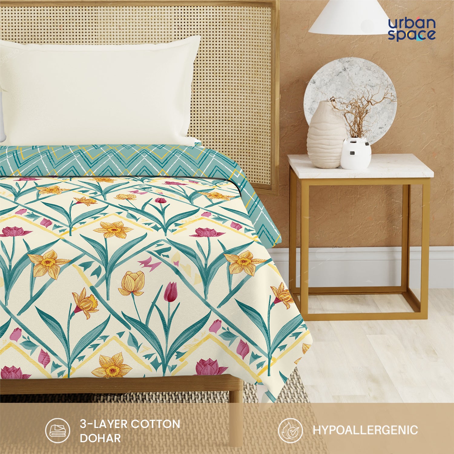 - Fabric and Design - Made with Cotton, this dohar is 3 layered blanket which provides with an optimal comfort and adds elegance to bedroom decor with its Reversible vibrant designs on both sides. Urban Space dohars have stylish fabric edging/piping, which gives the dohar its own unique elegant look and feel.