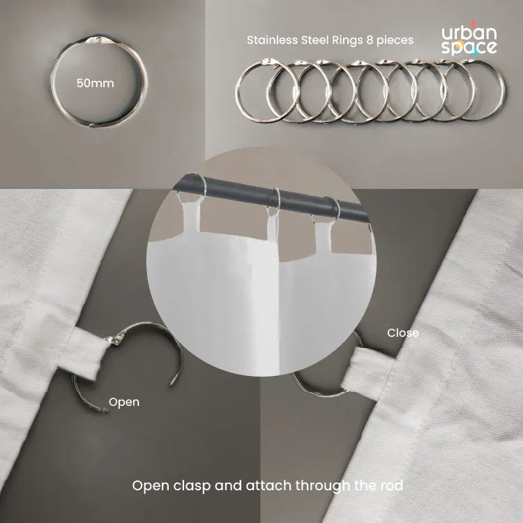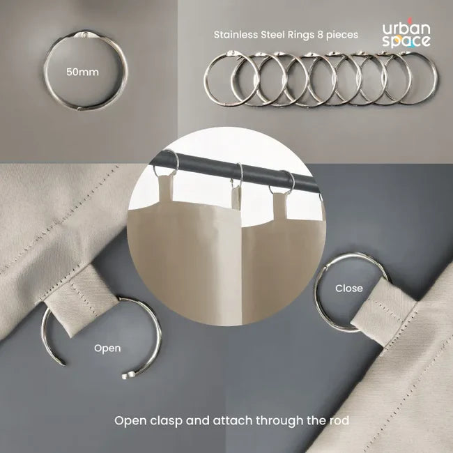 - Easy Installation: Comes with 8 sturdy steel rings, ready to hang and compatible with most curtain rods. Easy to install, the rings snap apart so you don't have to take your curtains down, placing them between the rings already holding your regular curtains, letting the blackout curtains just fall behind the outer drapes. And the tabs hold the rings can have a rod run through them as well.