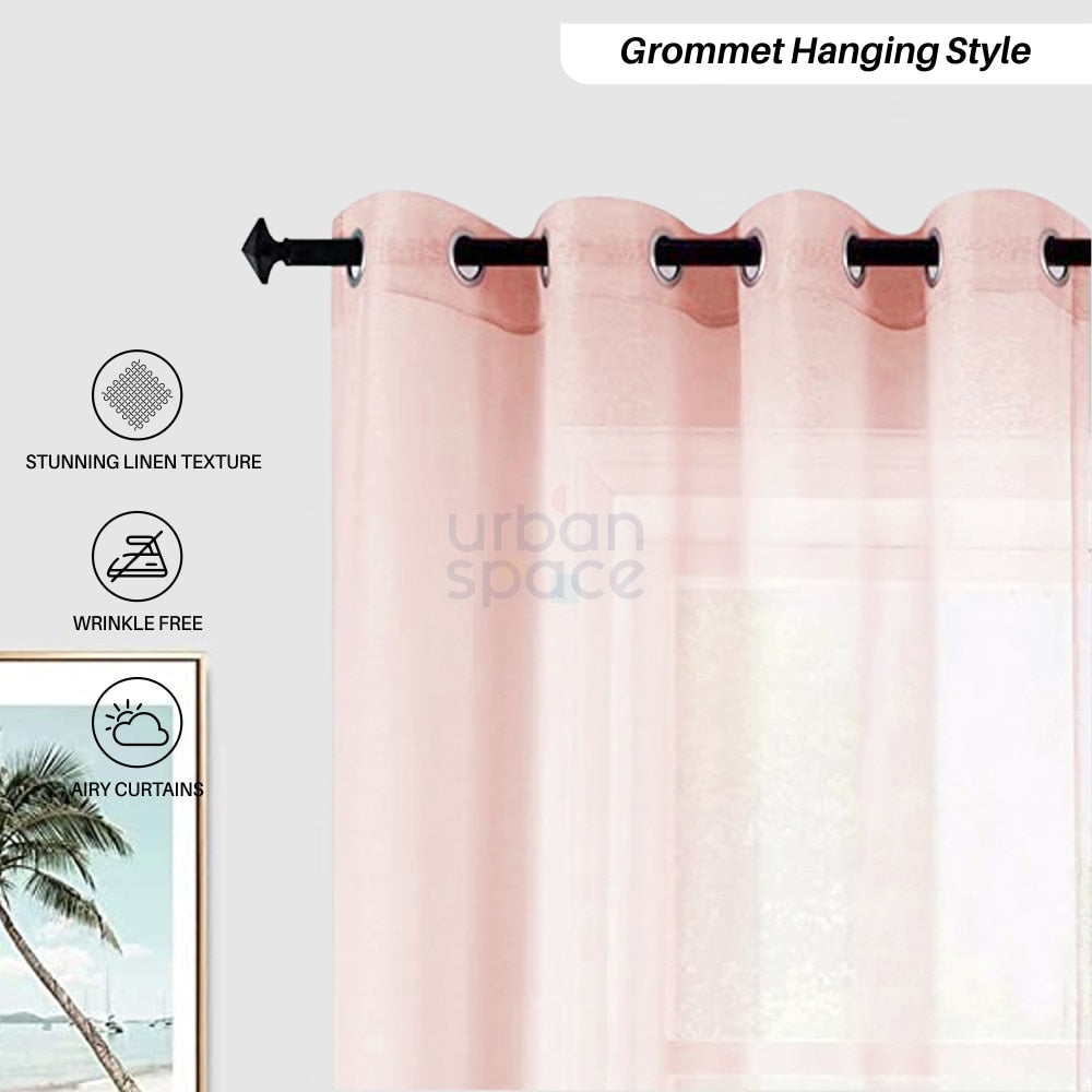 Linen textured Sheer Curtain for Living Room , Curtain for Bedroom, Readymade Curtain, Pack of 2 Curtains - Blush Pink