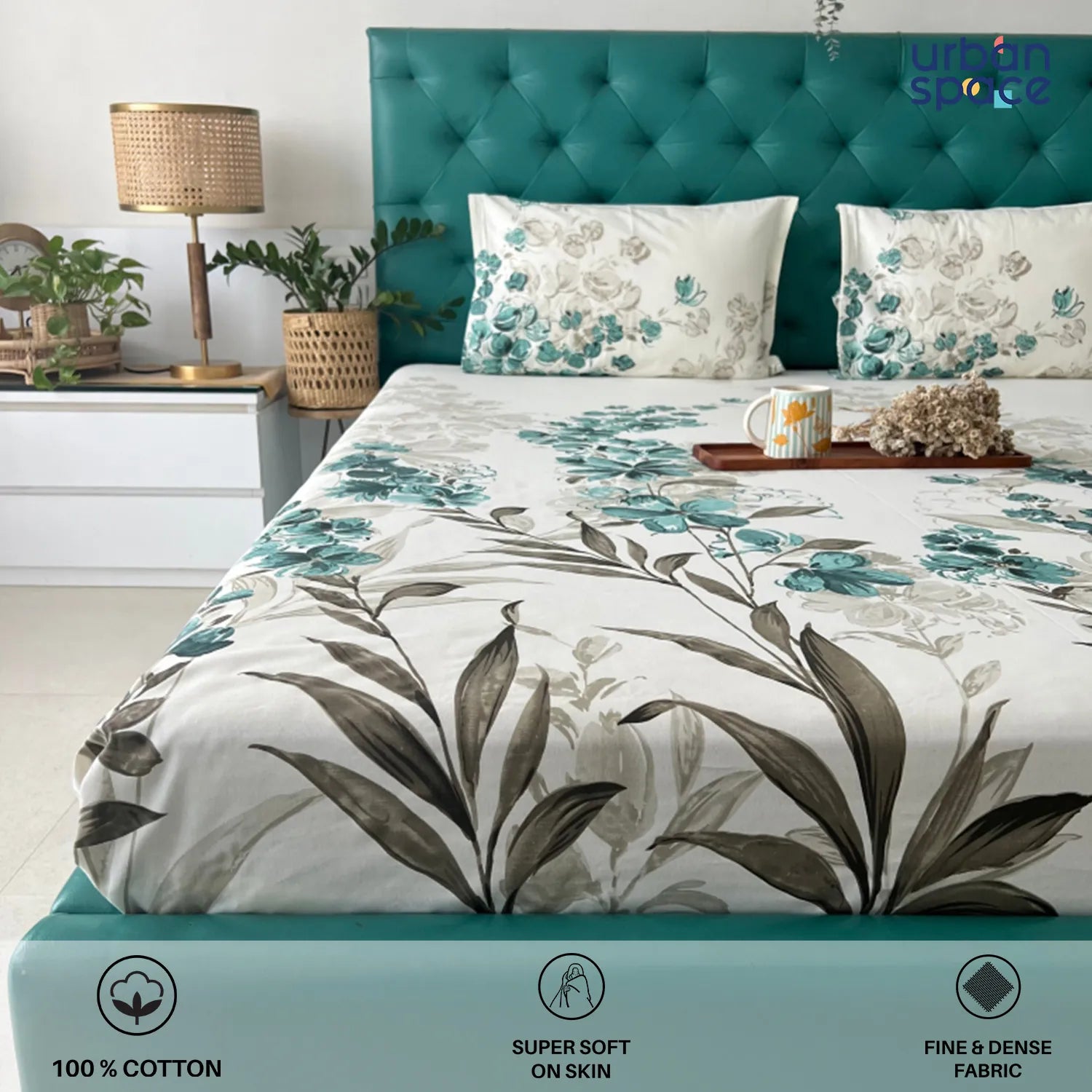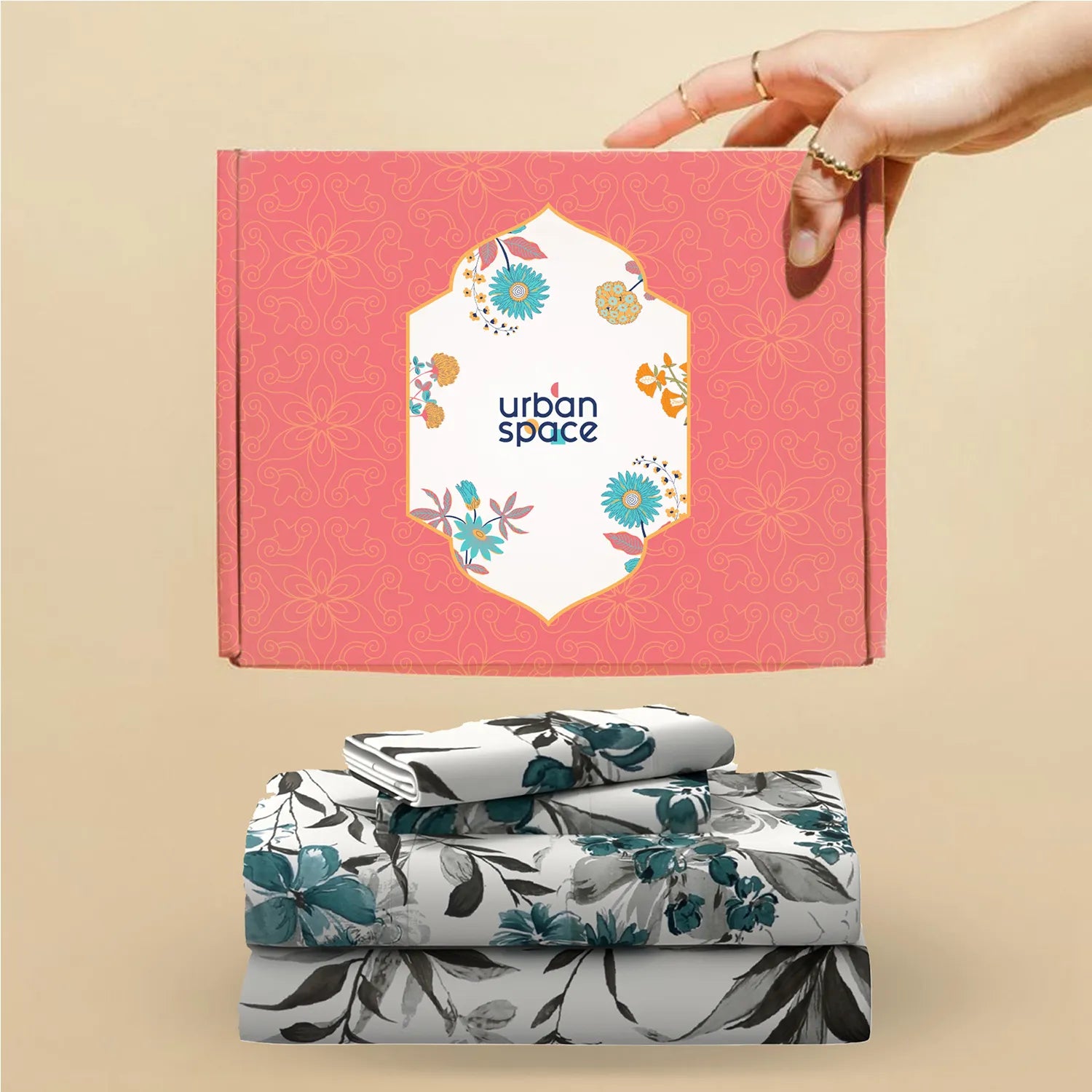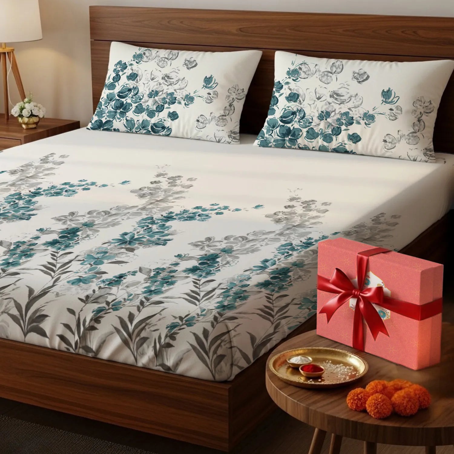 200 TC 100% Cotton Bedsheet Set in Gift Box - Majestic Aqua