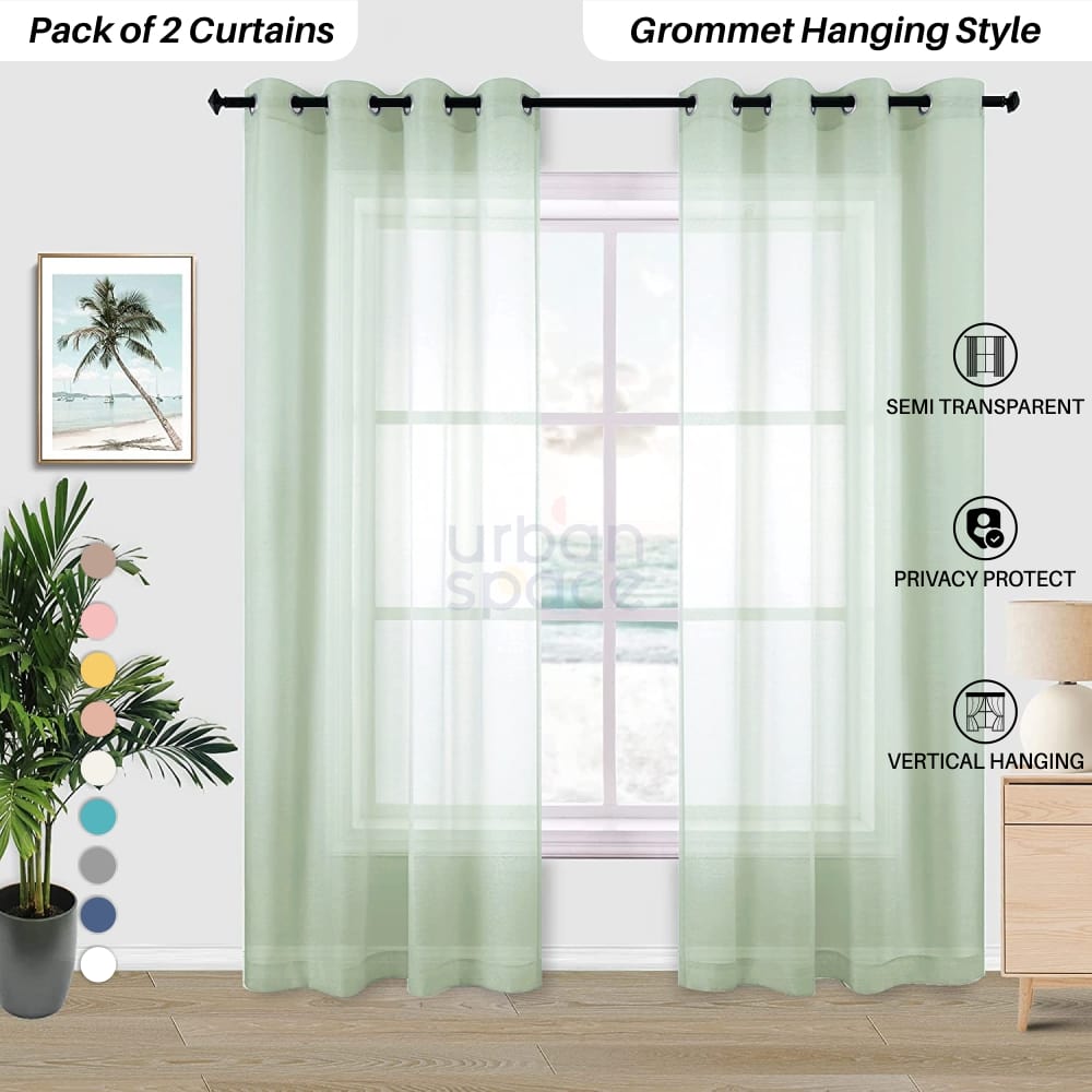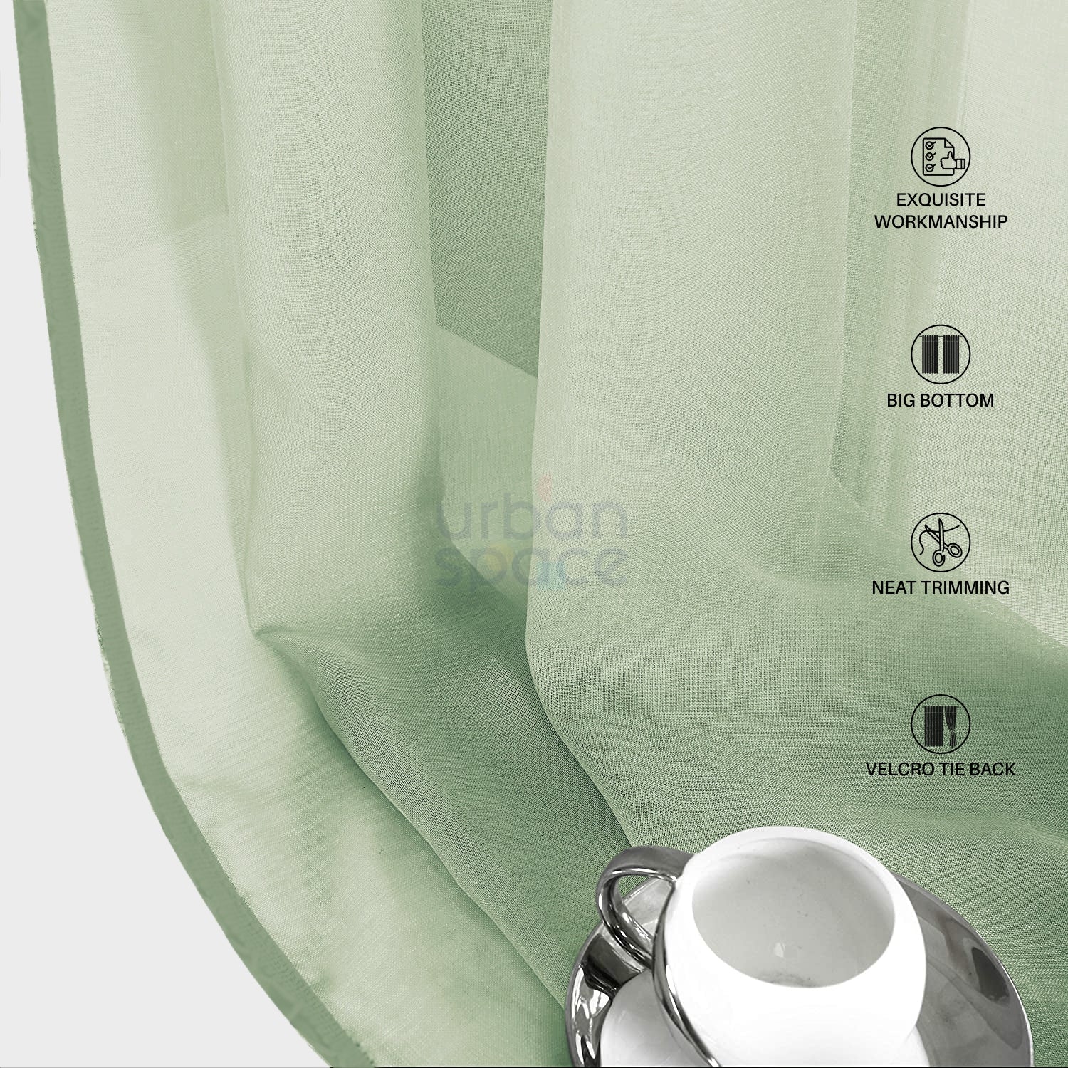 Sheer curtains for Living Room, Net curtains for balcony, pack of 2 curtains - Light Green