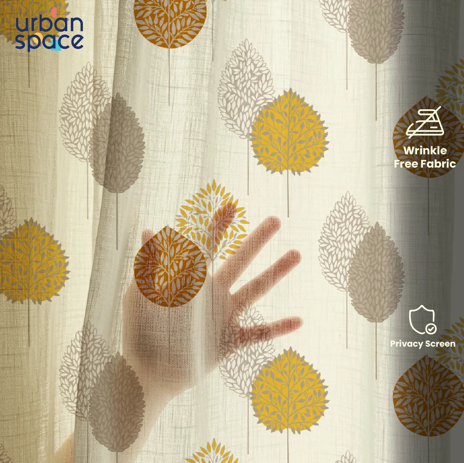 Sheer Curtains, Linen Textured & Digital Printed, Pack of 2 - Drops Mustard