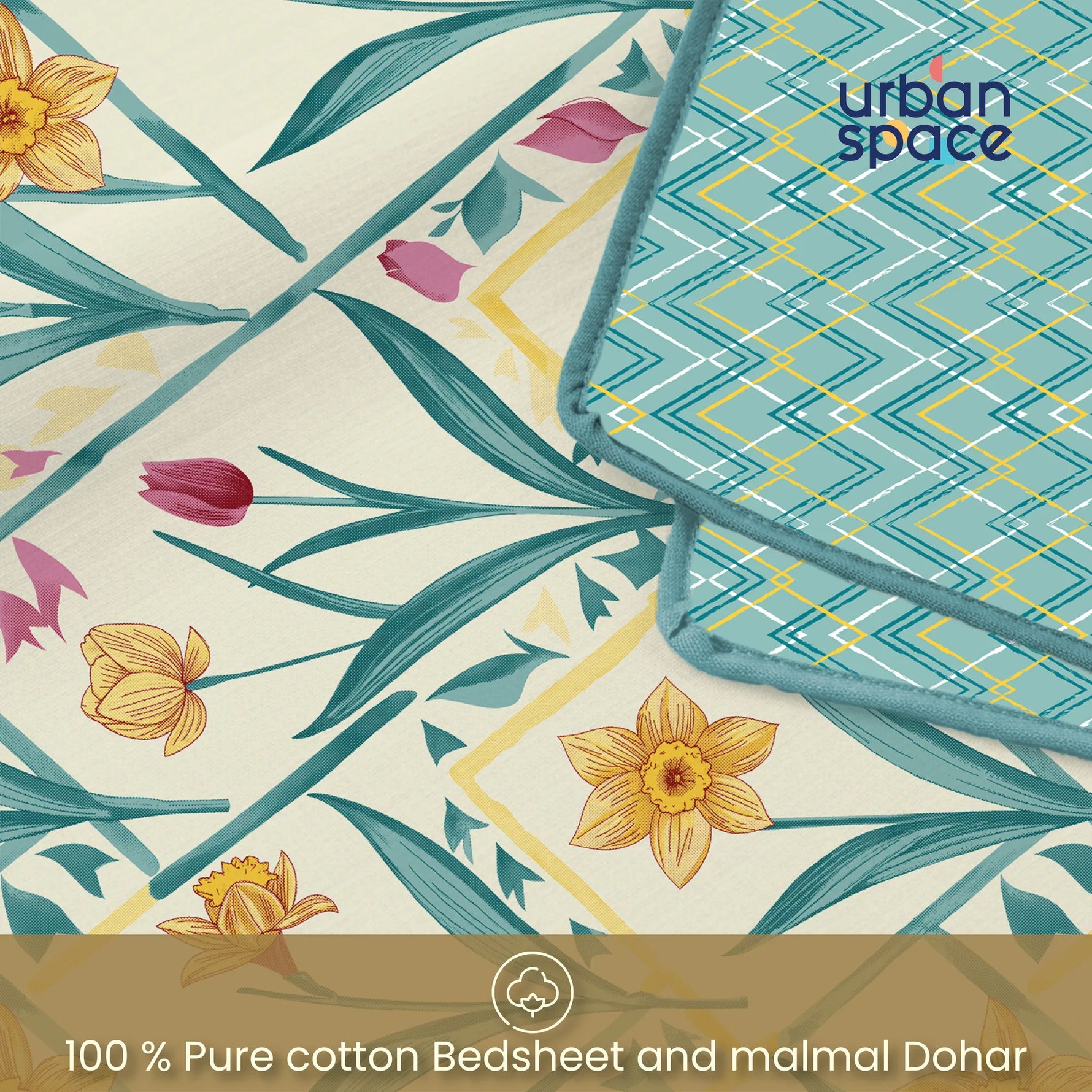Cotton Bedsheet + AC Cotton Dohar Combo Pack - Spring Turquoise