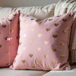 Decorative Velvet Gold Foil Heart Cushion Covers for Sofa, Bedroom, Living Room - Set of 2 - Heart of Gold Pink